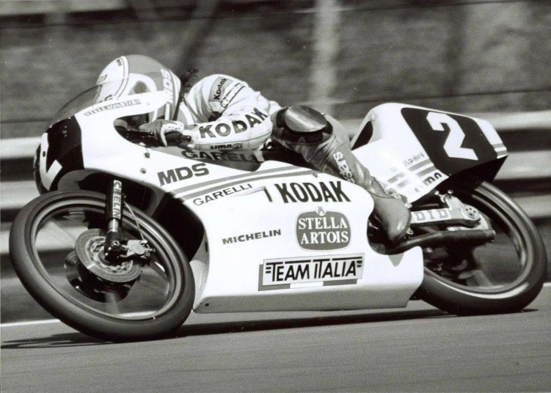 1985 - 1987 年間是福斯托.吉斯尼作為車手的高光時刻:1985 年、他奪得了 WGP125 的世界冠軍(車手年度總冠軍);1986 年、他獲得了亞軍;隨后的 1987 年,奮起直追的他、以十個分站冠軍的佳績,再次奪得 WGP125 的世界冠軍。這為他在 WGP 世界錦標(biāo)賽的歷史上,奠定了占據(jù)一席之地的基礎(chǔ)。