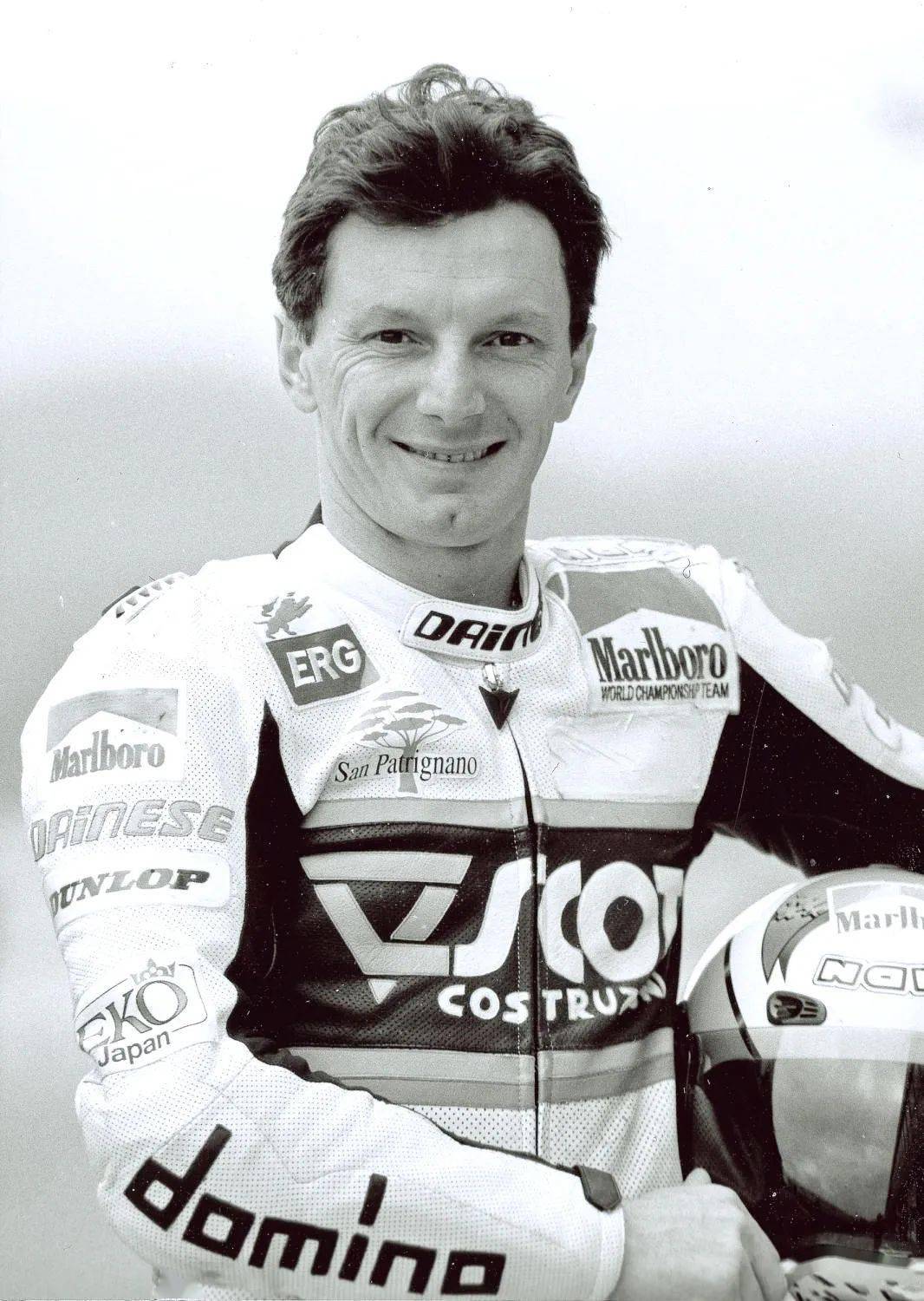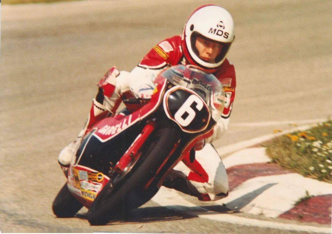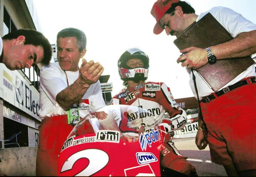 下面的圖片,車手時代的福斯托.吉斯尼(資料圖片。來源:MotoGP)。