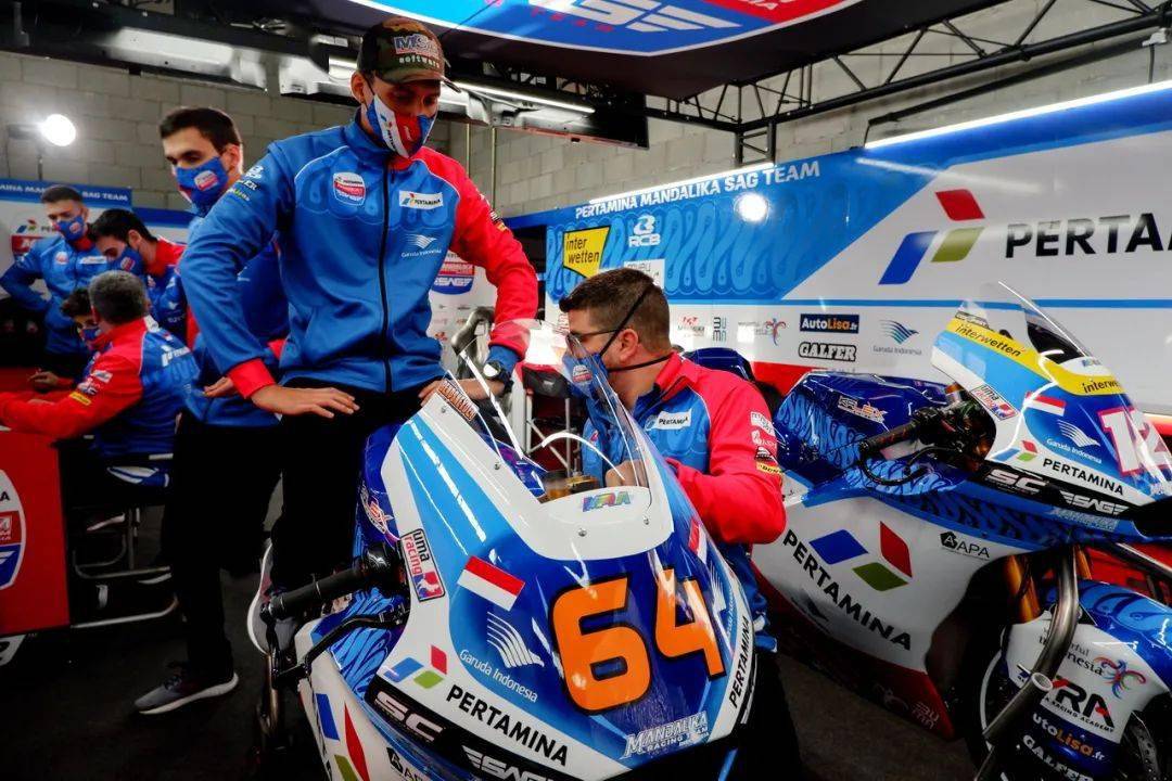 SAG 車隊(duì)來(lái)自西班牙,車隊(duì)的名字 SAG、語(yǔ)意來(lái)自 Stop And Go “ 停止和行走 ”,車隊(duì)在去年拿到了一次分站冠軍、全季共有四次登上頒獎(jiǎng)臺(tái)的記錄。在新的 2021 賽季,他們換了新的贊助商,名字也從去年的 onexox TKKR SAG、變更為新的 Pertamina Mandalika SAG。