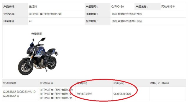 去年摩博會(huì)亮相QJMOTOR展臺(tái)的追700,終于開(kāi)始申報(bào)了。這臺(tái)車(chē)是追系列的旗艦車(chē)型,也是當(dāng)時(shí)現(xiàn)場(chǎng)唯一沒(méi)有公布價(jià)格的車(chē)型。從申報(bào)信息看和當(dāng)初展出的并沒(méi)有什么差別,700cc雙缸發(fā)動(dòng)機(jī),最大功率56kw,最大扭矩68.2Nm。