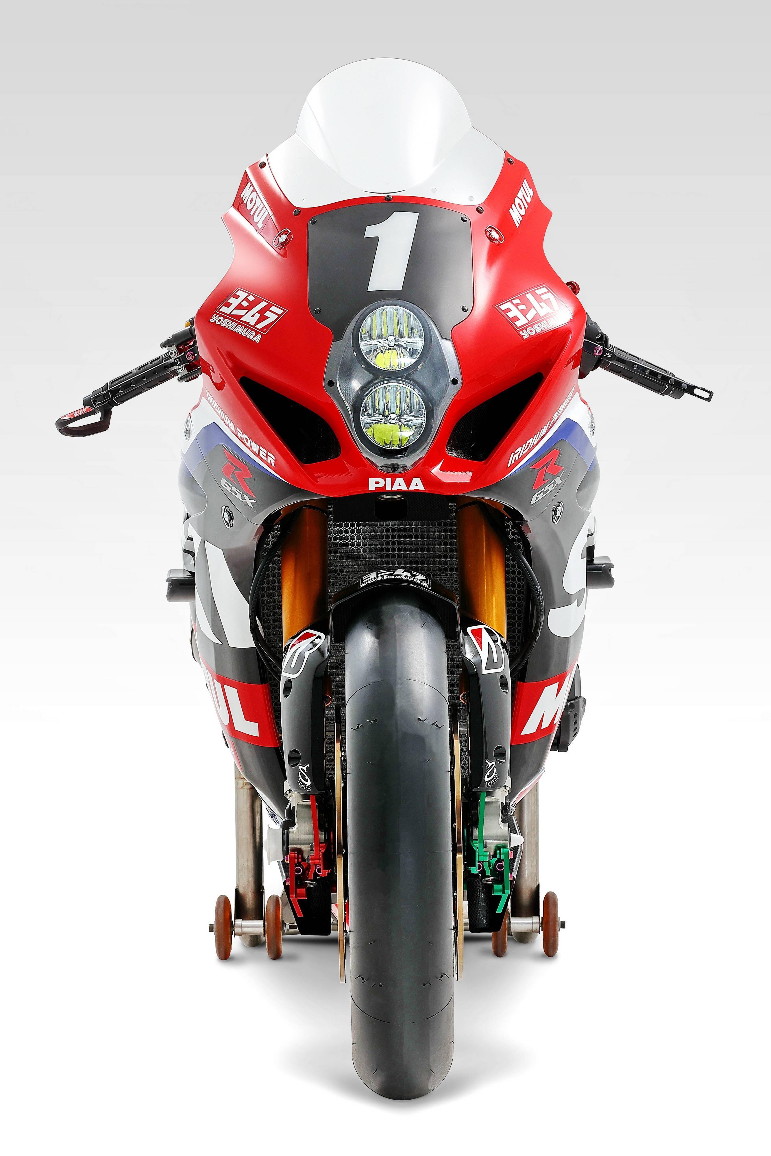 車隊(duì)使用的賽車、基礎(chǔ)車是 Suzuki 的超級(jí)跑車 GSX-R1000R,全車從內(nèi)至外都經(jīng)過了大量的改裝,車體采用了吉村標(biāo)志性的紅黑主色調(diào)圖案,輪胎供應(yīng)商是普利司通(有別于 MotoGP 和 WSBK,EWC 沒有采用單一輪胎供應(yīng)商,各車隊(duì)可各自選擇不同品牌的輪胎參賽)。