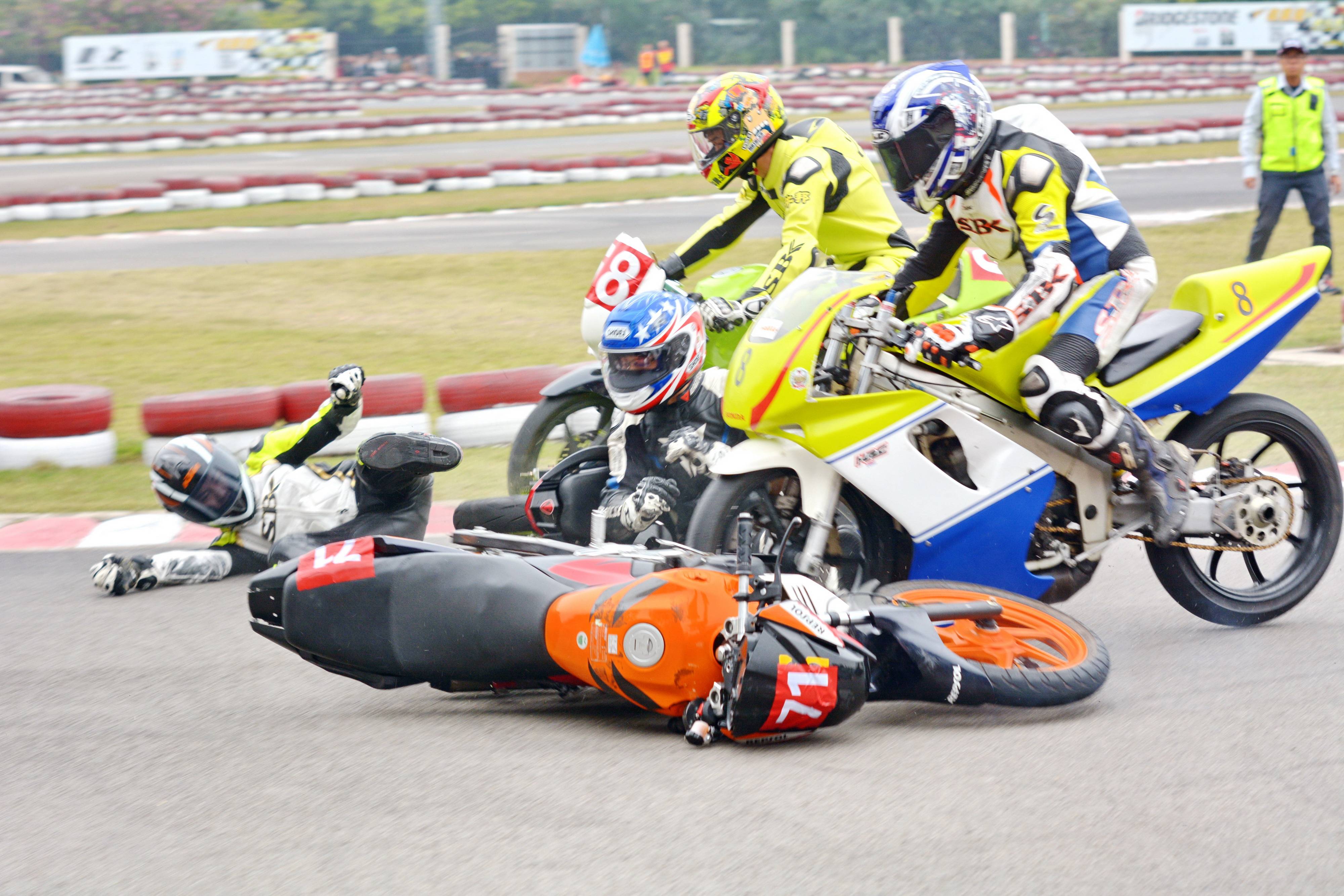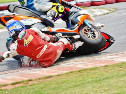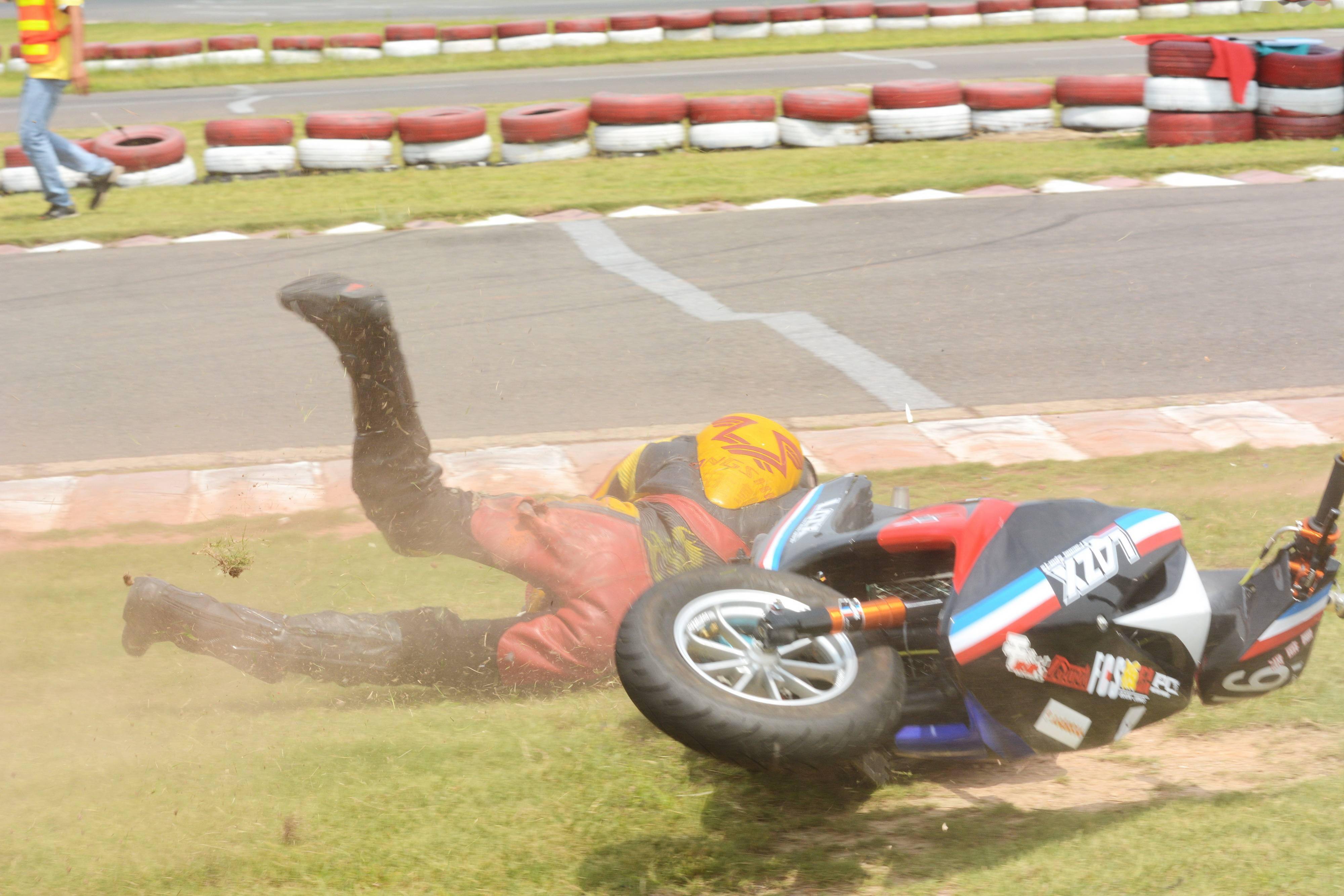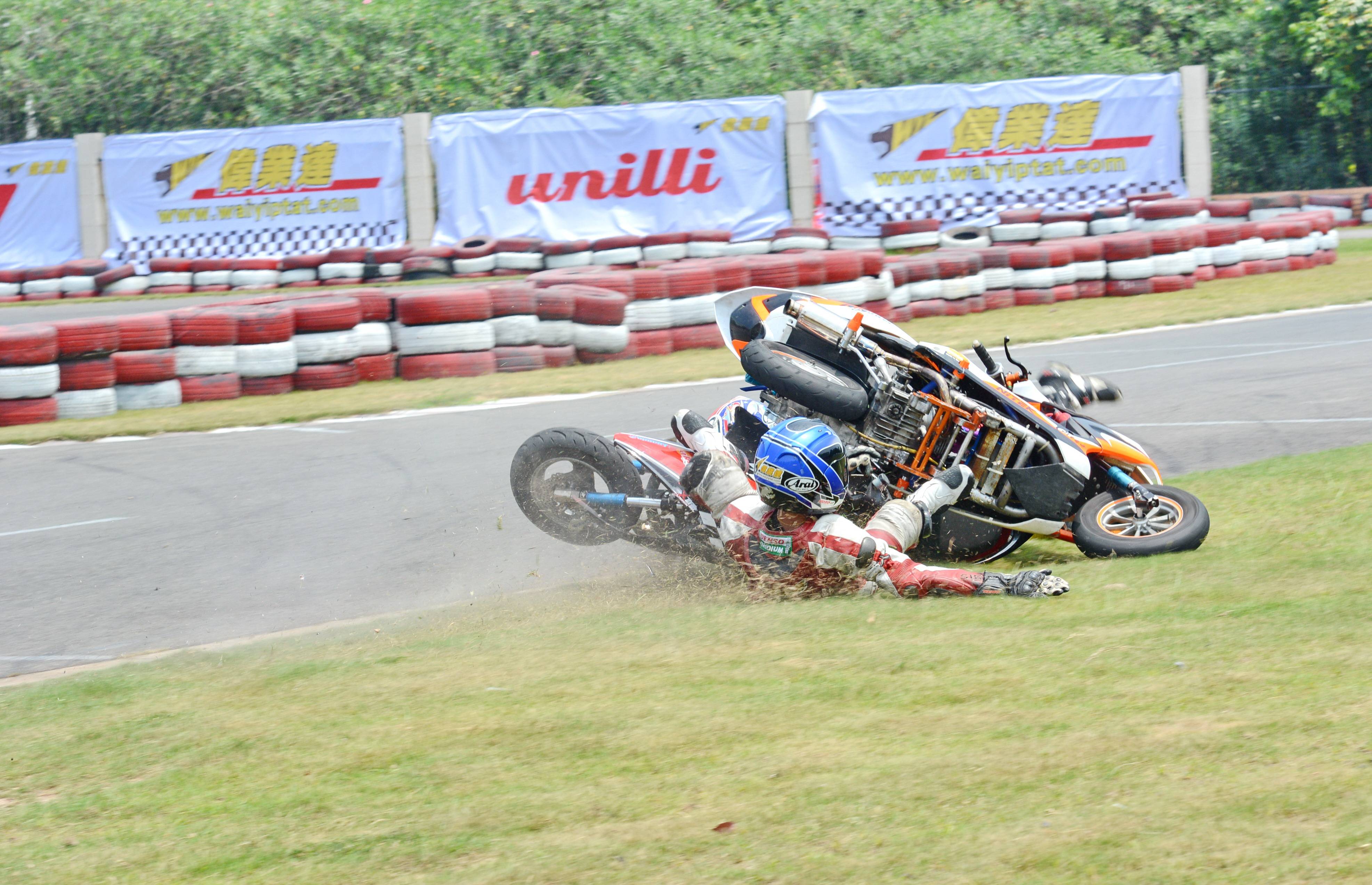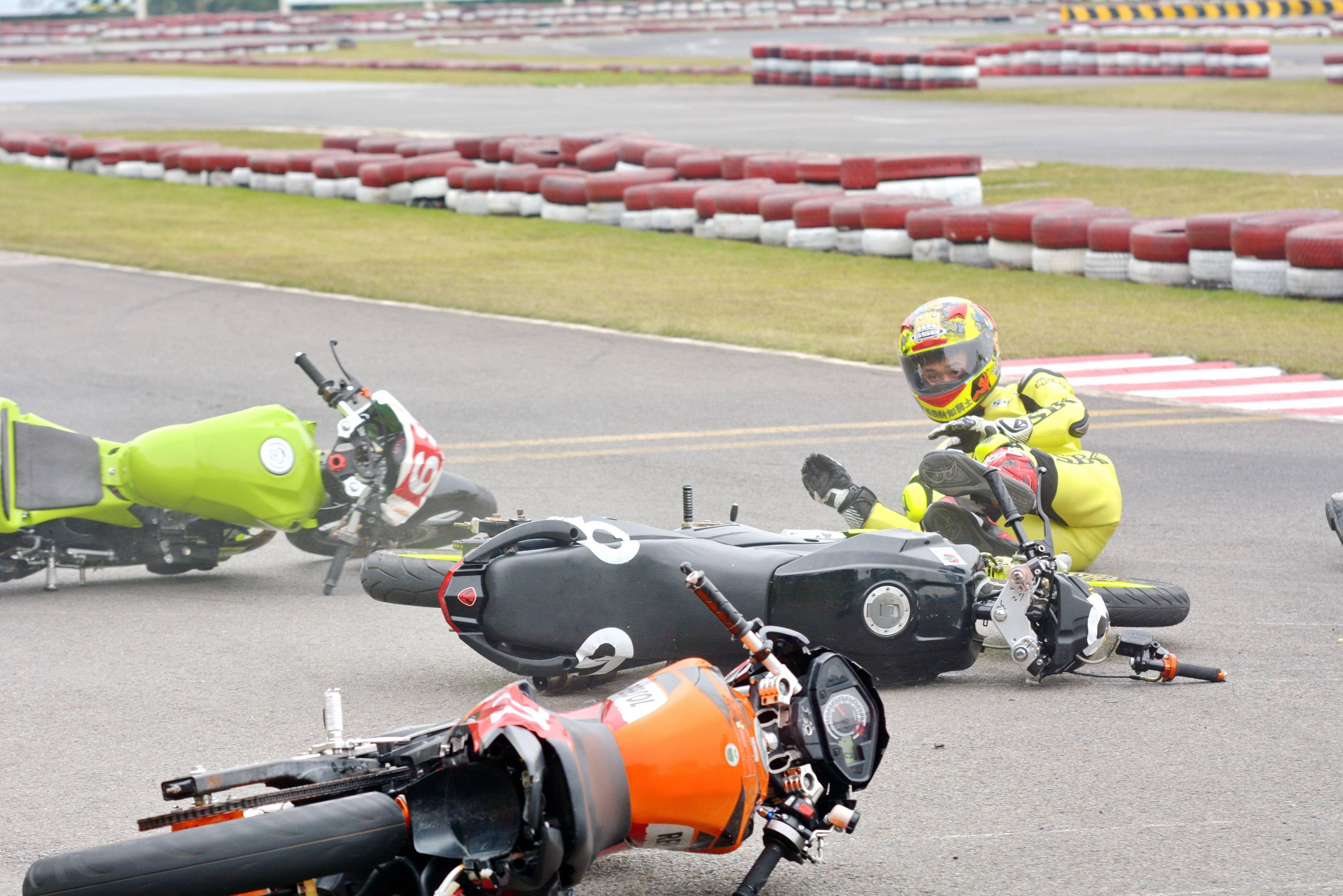 在賽車場(這里是指兩輪公路賽方面)里面,摔車是個(gè)常見的現(xiàn)象,沒摔過車的世界冠軍、目前還聽說過有哪位,甚至可以說、沒摔過車的世界大賽車手,截止今天、還沒發(fā)現(xiàn)過有誰。
