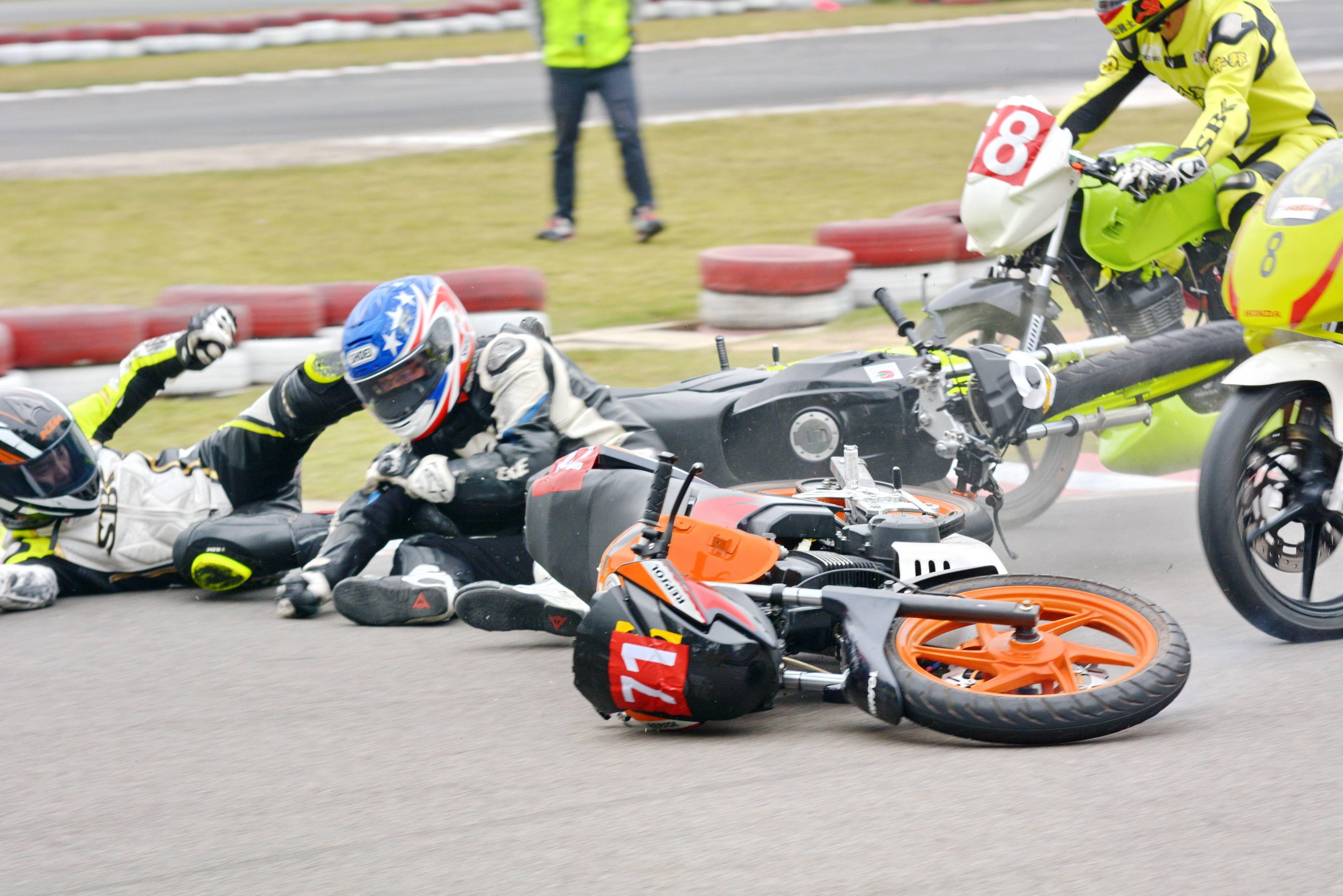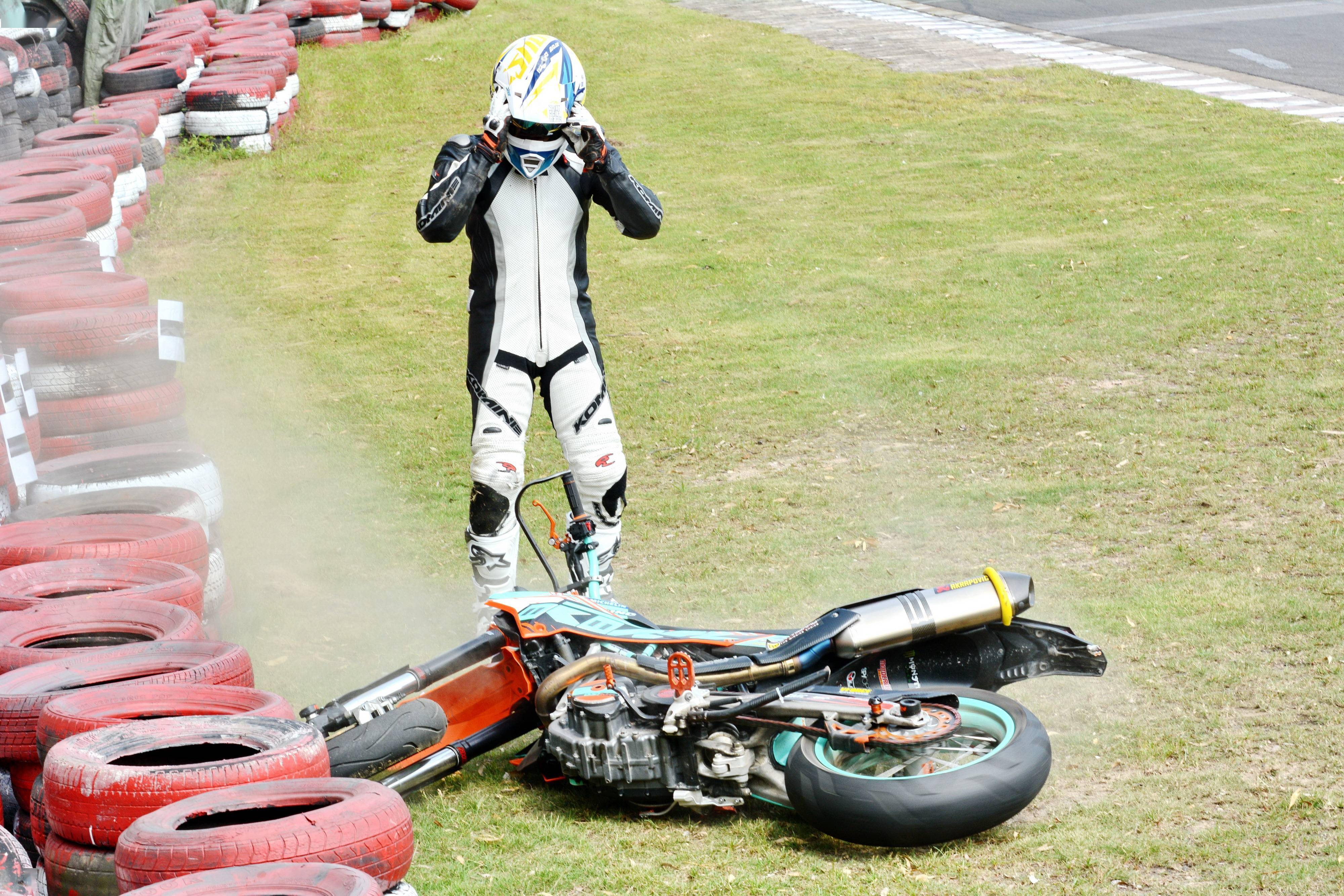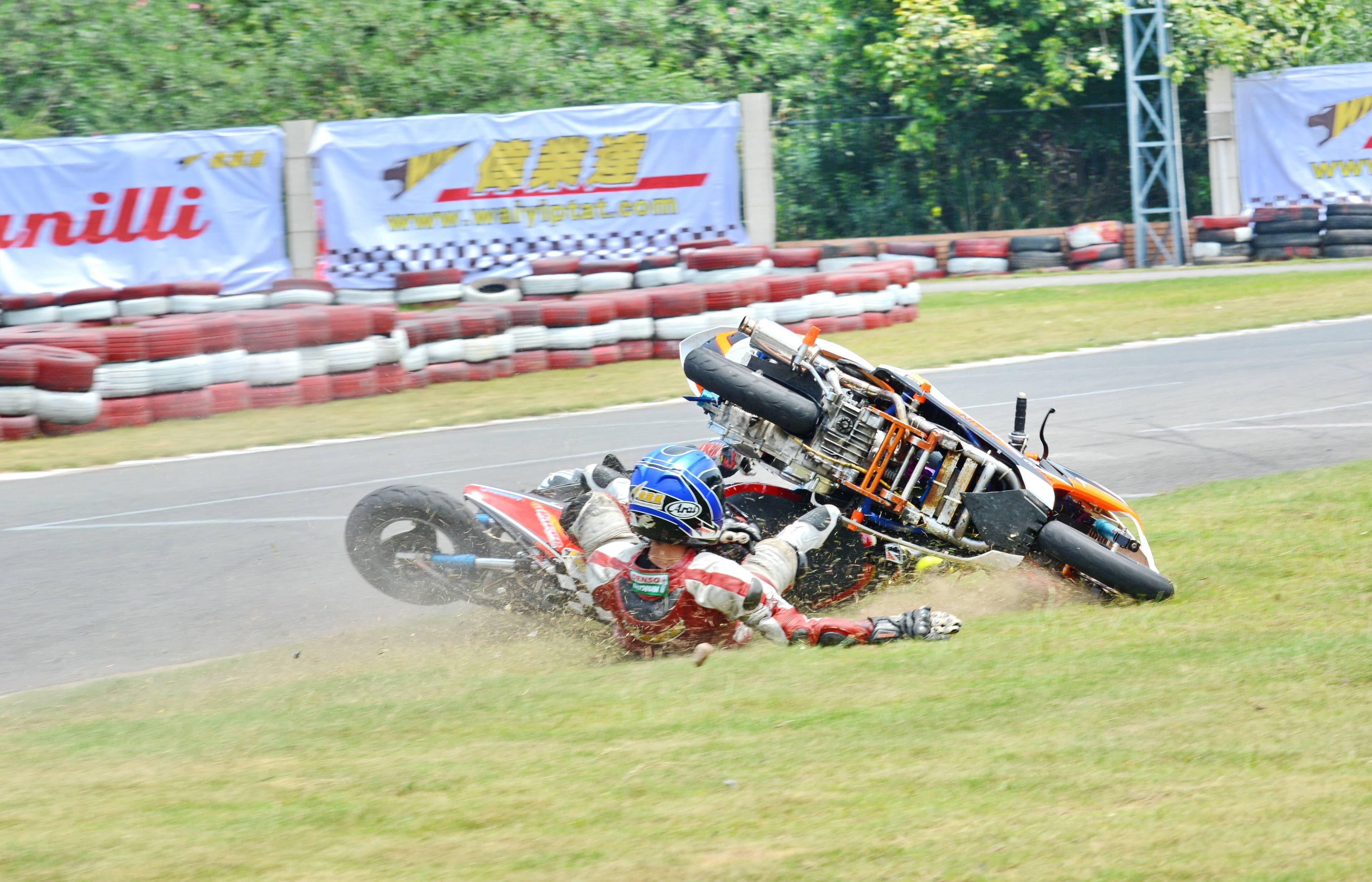 換個(gè)角度去看,摔車也可以理解為曾經(jīng)對極限(或是對機(jī)器、輪胎,或是對車手自身的競技水平)的一次又一次嘗試、以及不甘于到此為止的失敗。賽道上,可以看到的那些如行云流水般的順暢、高速,背后或許就是來自于無數(shù)次曾經(jīng)失敗的嘗試。