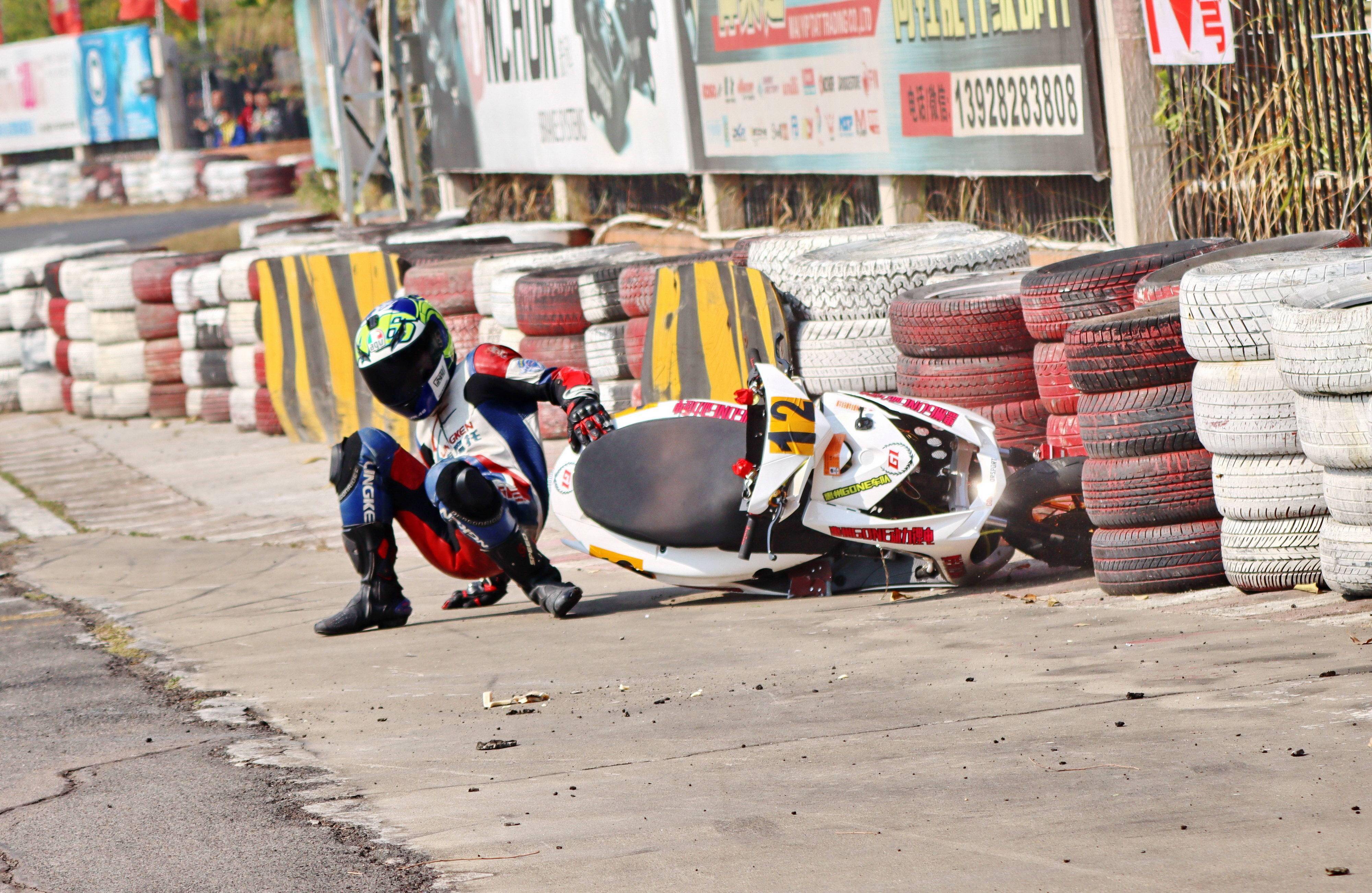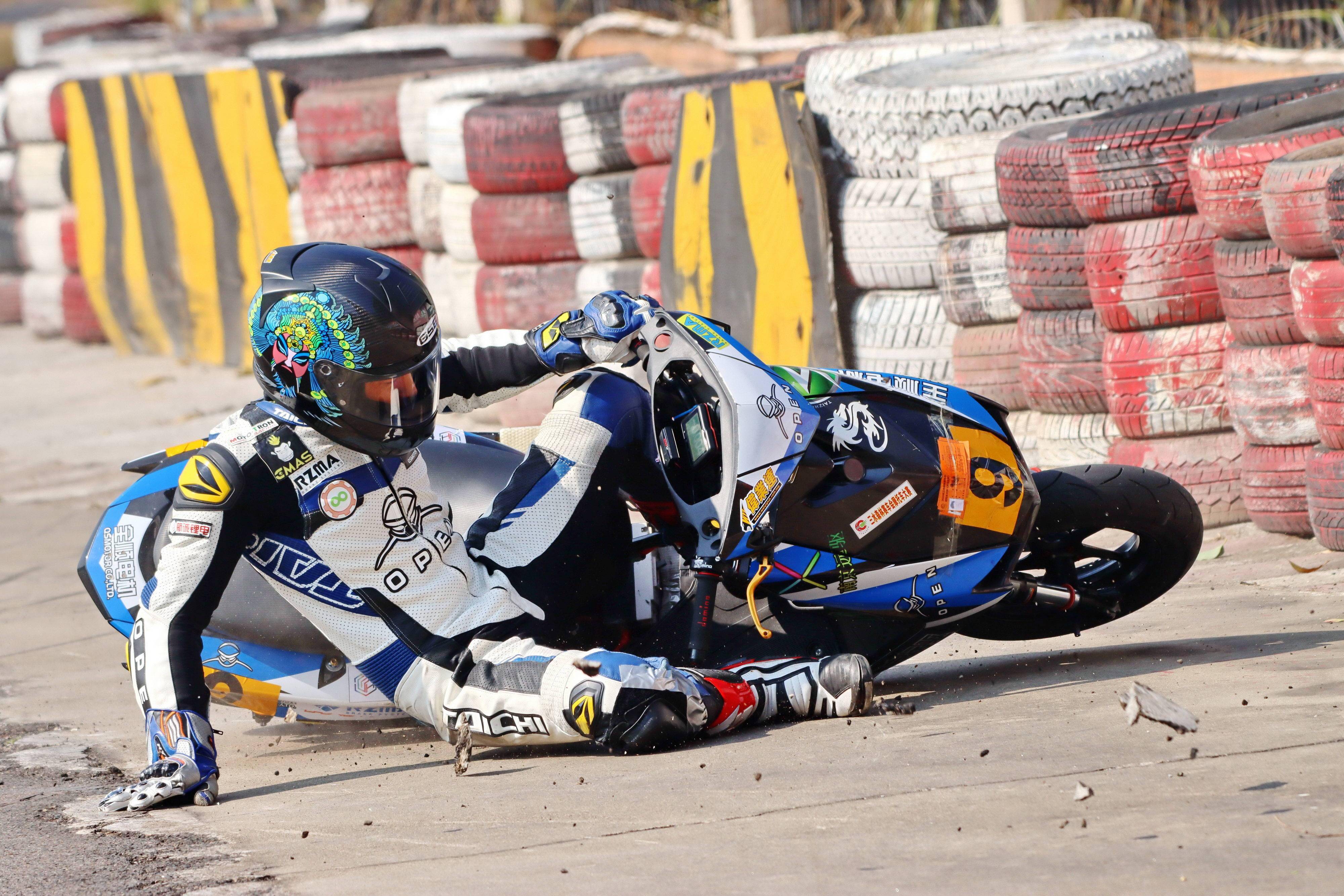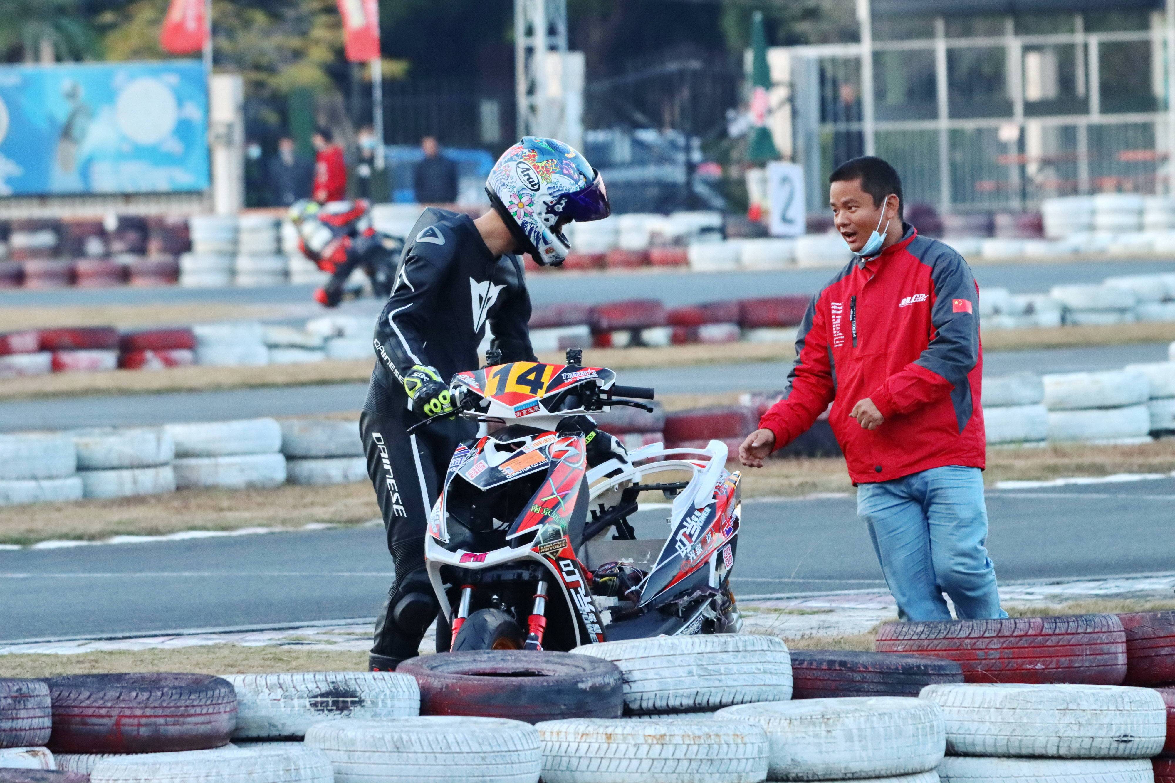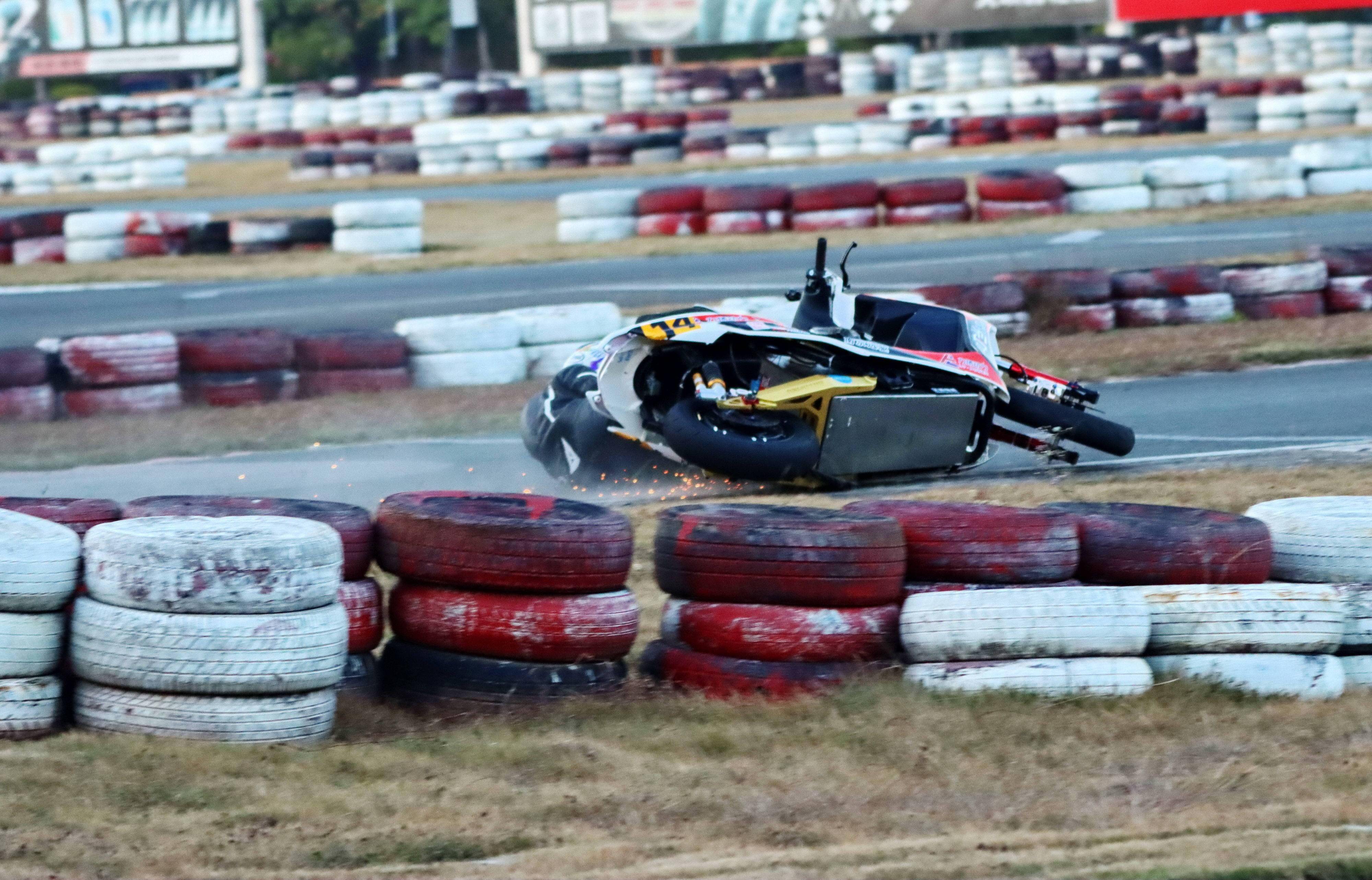 下面的圖片,去年 十二月 19 - 20 在廣東三水森林公園賽車場舉行的 2020 年三水森林賽車會摩托車大賽 偉業(yè)達杯第四回合,全順電驅(qū)動組、多位車手摔車的瞬間。