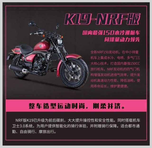 力帆K19的NRF版,主要是換上了最新的NRF技術發(fā)動機,如果說NBF是二代的話,NRF應該是力帆第三代水冷發(fā)動機技術,此外K19 NRF版取消了后鼓剎的設計換上了碟剎盤,不過依然未能配備ABS防抱死系統(tǒng)。
