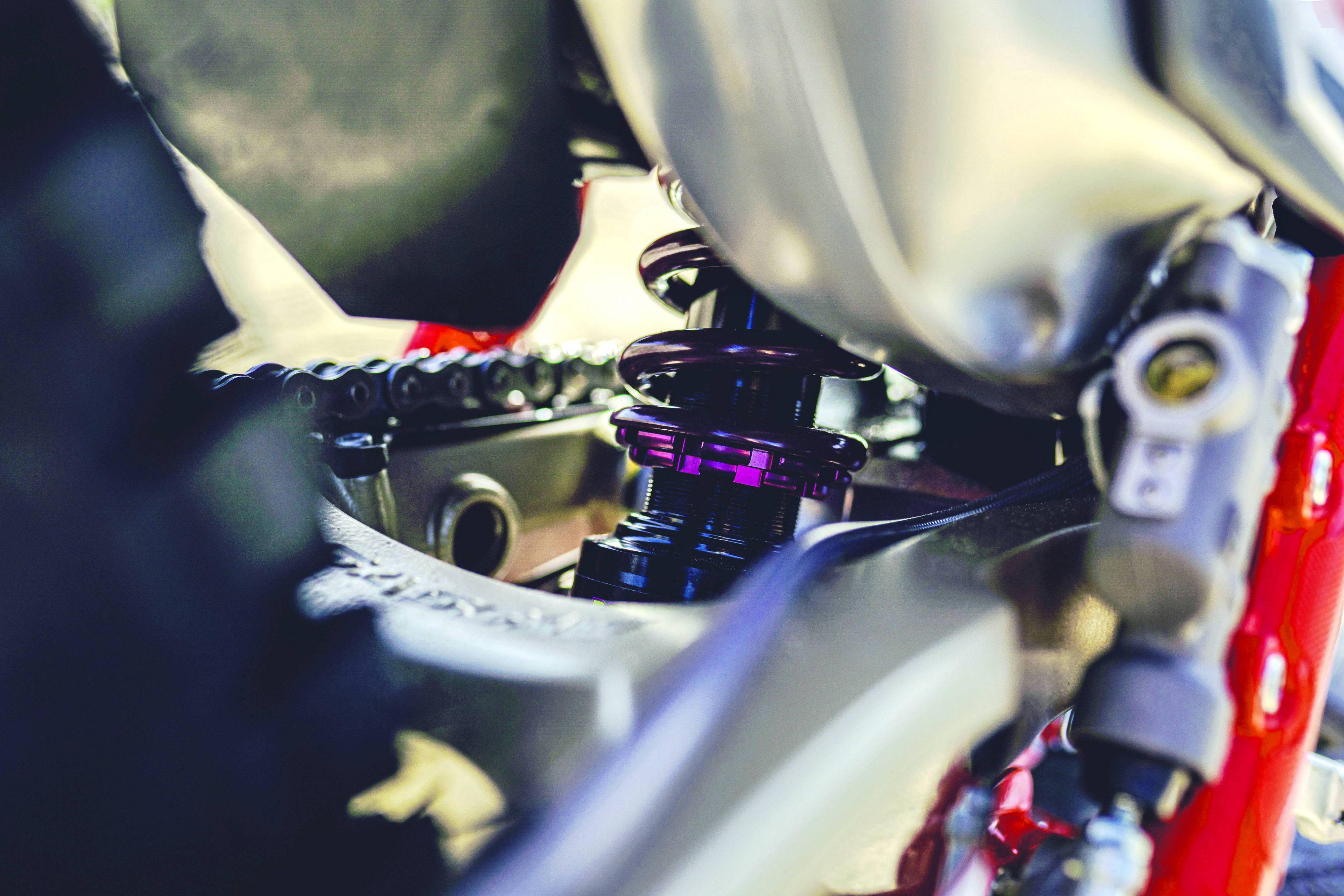 其他的車體配置上也與 GP 版相當(dāng),前懸掛系統(tǒng)采用了叉芯口徑為 39 mm 的正立式前叉,容量為 2.4 公升的油箱,全車多處采用了碳纖維復(fù)合材料制的組件,整備重量比 GP 版略重(Racing 版為 69.4 公斤,而 GP 版只有 67.9 公斤)。