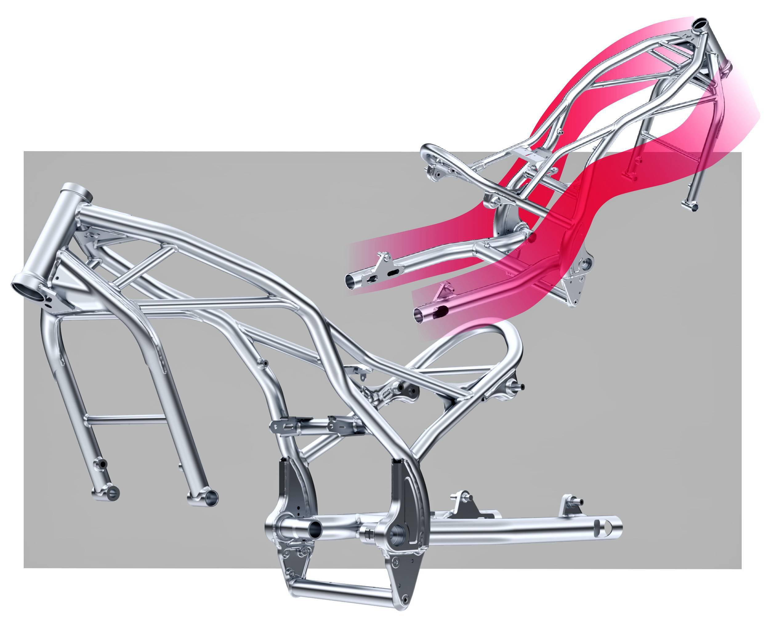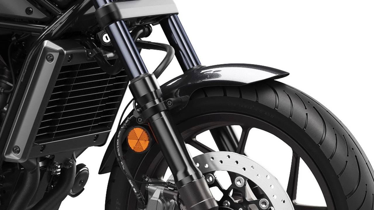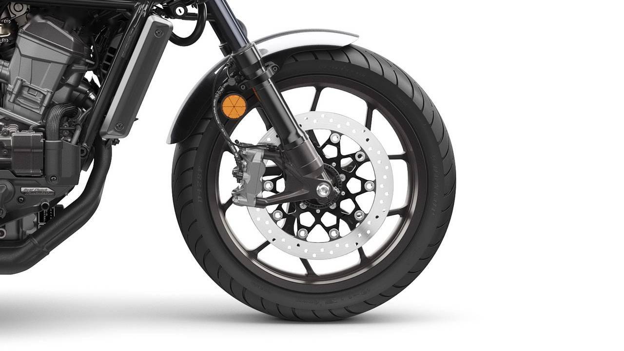 Rebel 1100 的鉆石型車架、主樑以口徑為 35 mm 的鋼管制成,后搖臂主結構件則以口徑為 50.8 mm 的鋼管制成。只有 700 mm 的座位高度,配合整個轉向幾何結構,為騎士提供充足的穩(wěn)定性和易于操控的特點。懸掛系統(tǒng)采用了叉芯口徑為 43 mm 的正立式前叉、背馱式后雙筒的減震。