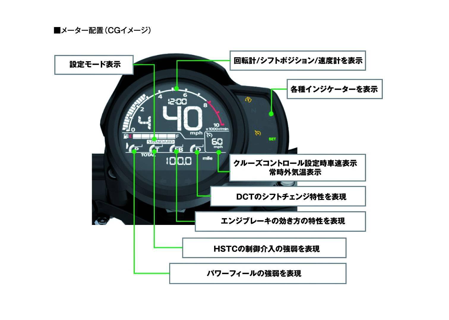 電子控制系統(tǒng)方面,標配了 TBW 電子控制油門,可選的騎乘模式(發(fā)動機動力輸出模式),巡航控制,HSTC 牽引力控制系統(tǒng),經(jīng)過了優(yōu)化的 DCT 雙離合控制系統(tǒng)等。