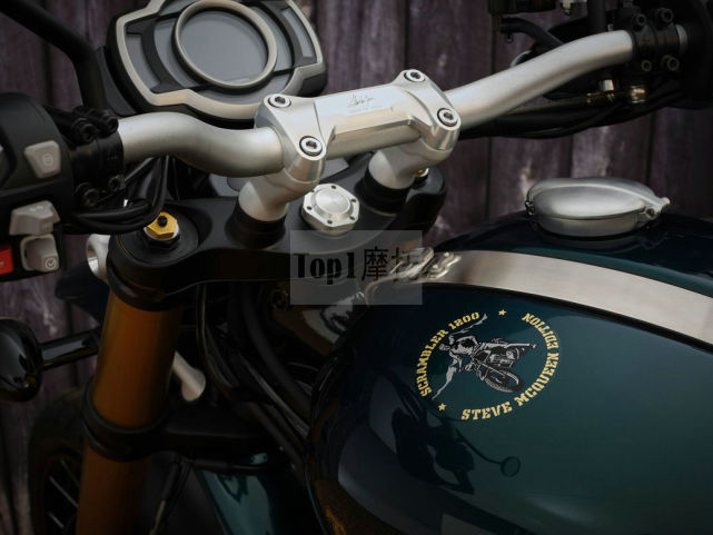 特別版具有,獨(dú)家的Competition Green定制油漆方案,并以手繪金線框起來,并配有獨(dú)特的細(xì)節(jié),例如Steve McQueen的油箱圖形,蒙扎鋁蓋和不銹鋼發(fā)動(dòng)機(jī)保護(hù)桿。還標(biāo)配了,例如激光切割的鋁制散熱器護(hù)板,縫制Triumph品牌標(biāo)記以及鋁制高架前擋泥板和后擋泥板。