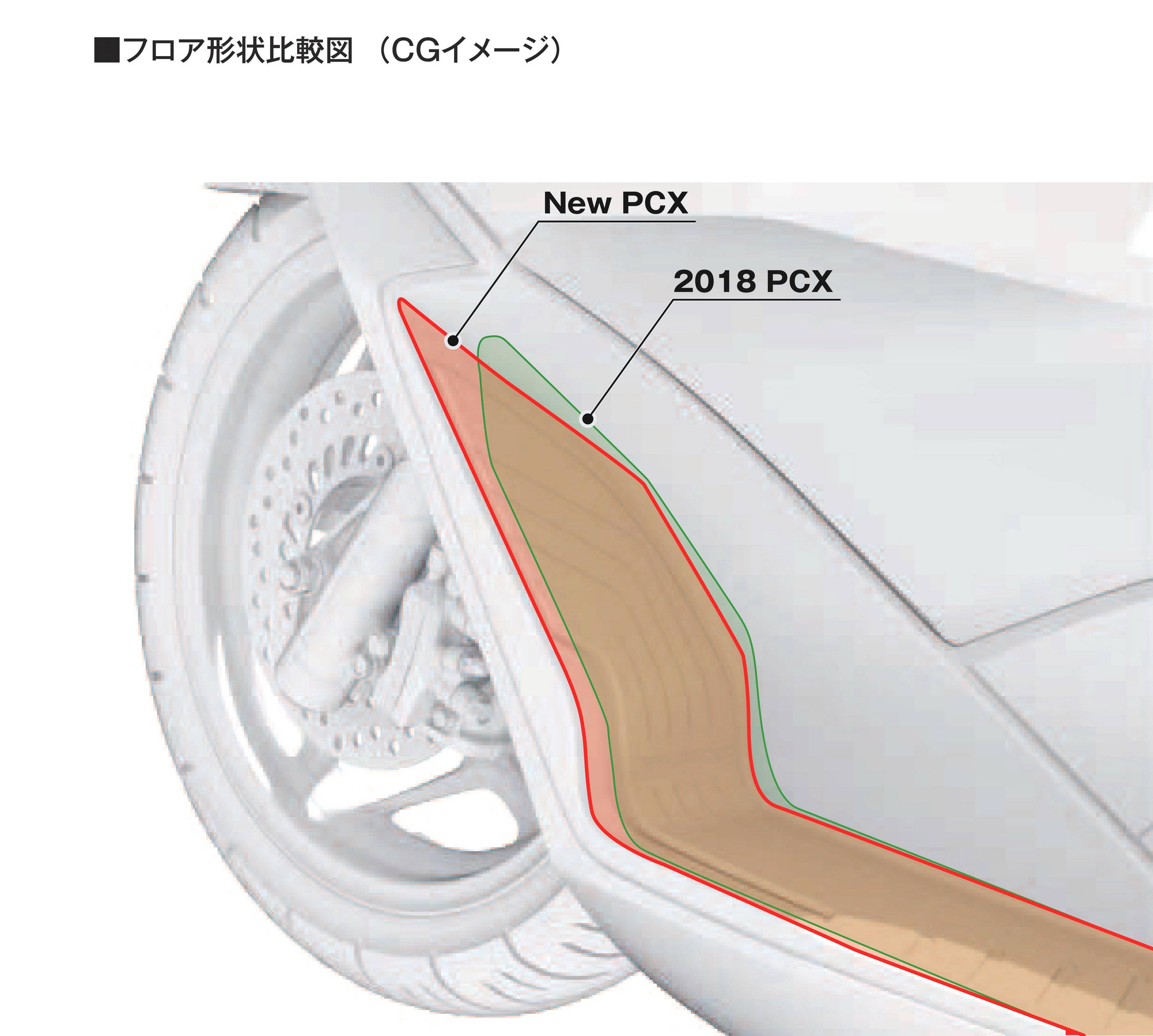 下面的圖片,新舊款 PCX 腳踏板前端變化的 CG 對比示意圖。