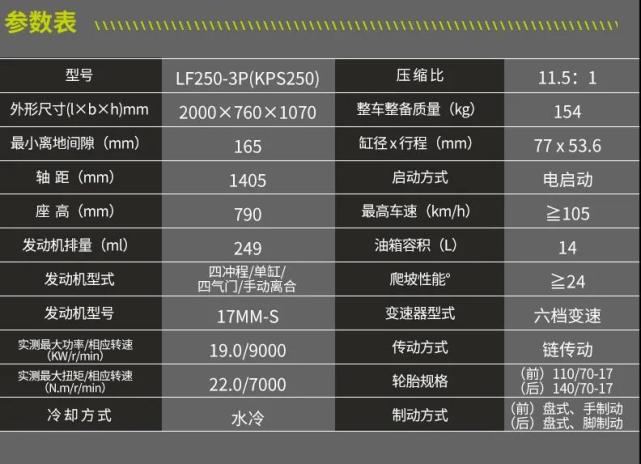 力帆KPS250的具體配置如下: