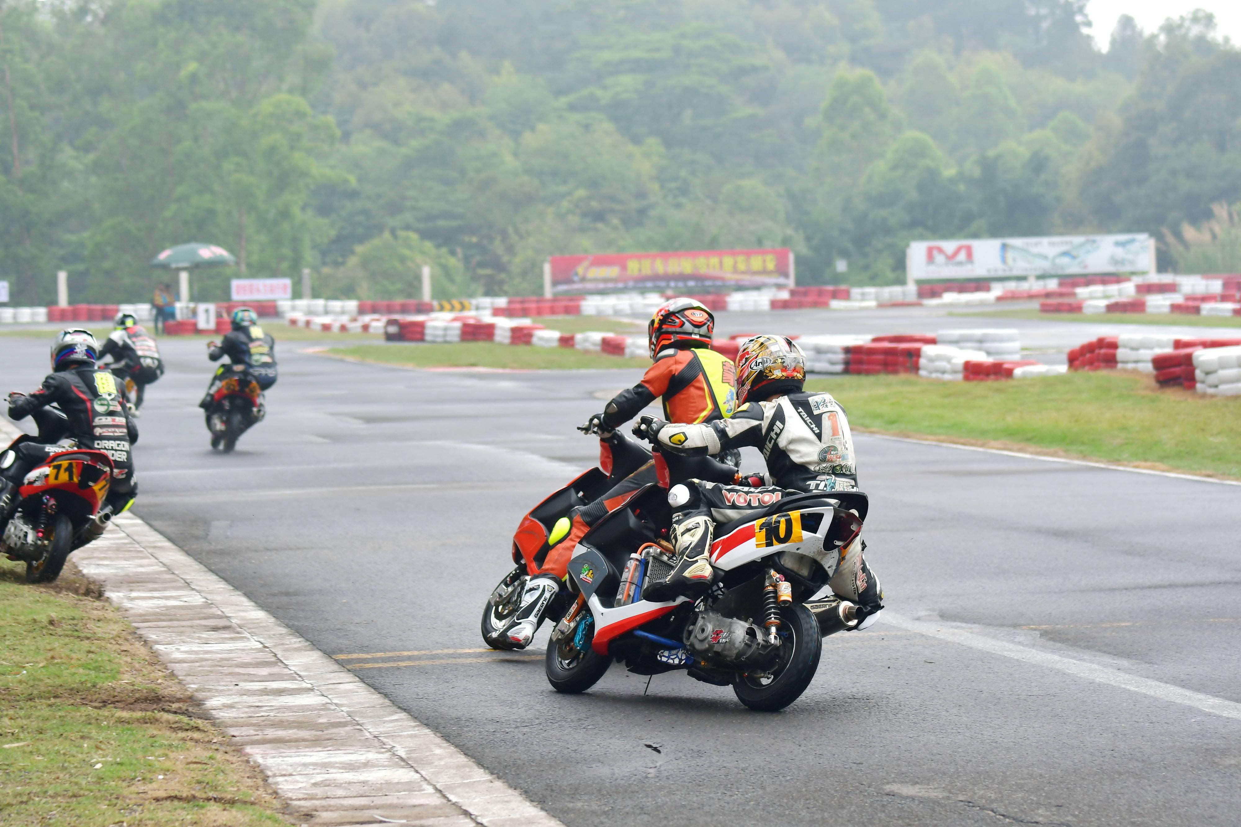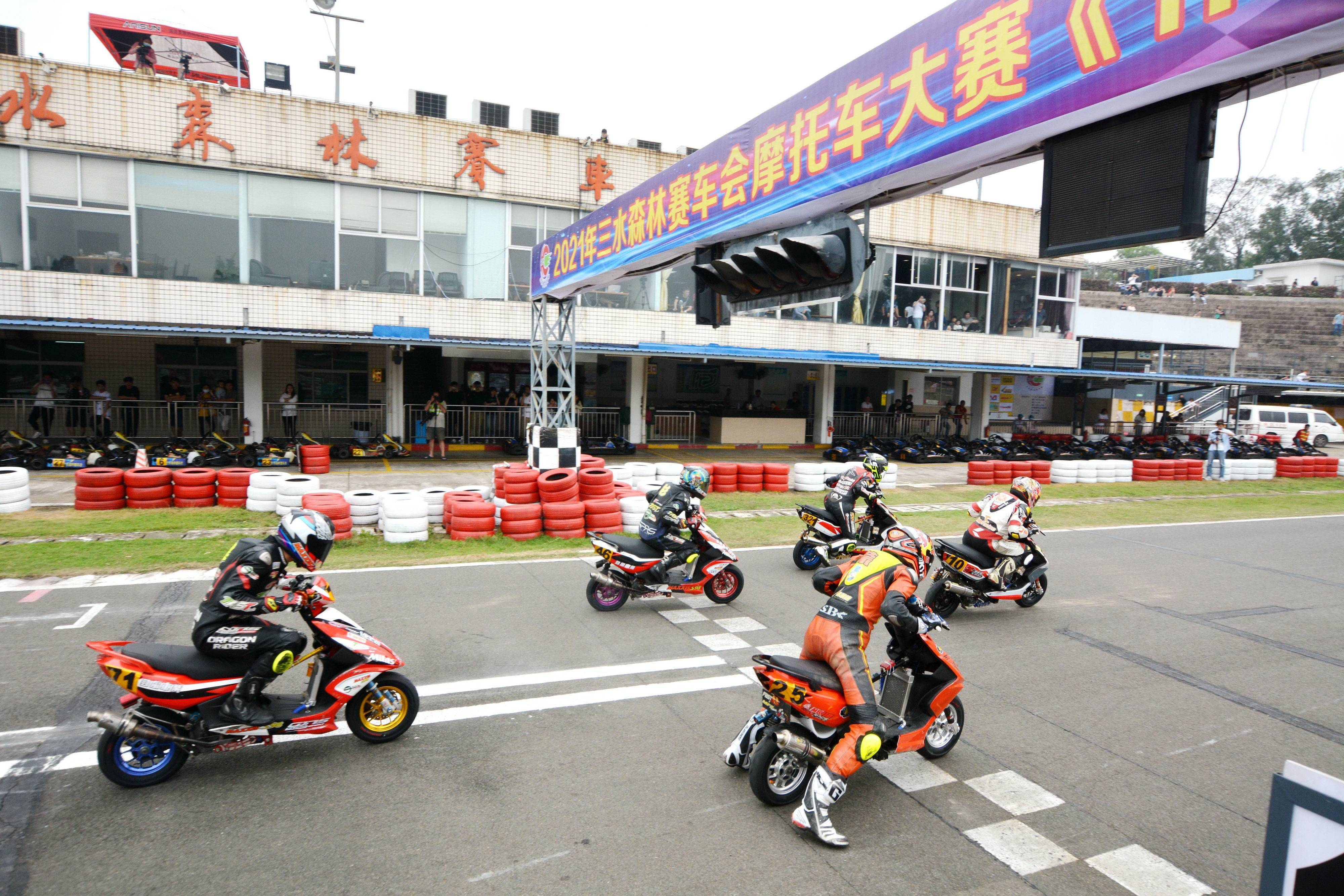 下面的圖片,2021 偉業(yè)達(dá) GP、三水森林賽車會(huì)摩托車大賽 偉業(yè)達(dá)杯 第一回合,Arisun 艾瑞森輪胎改裝踏板 150cc 公開組的比賽現(xiàn)場。