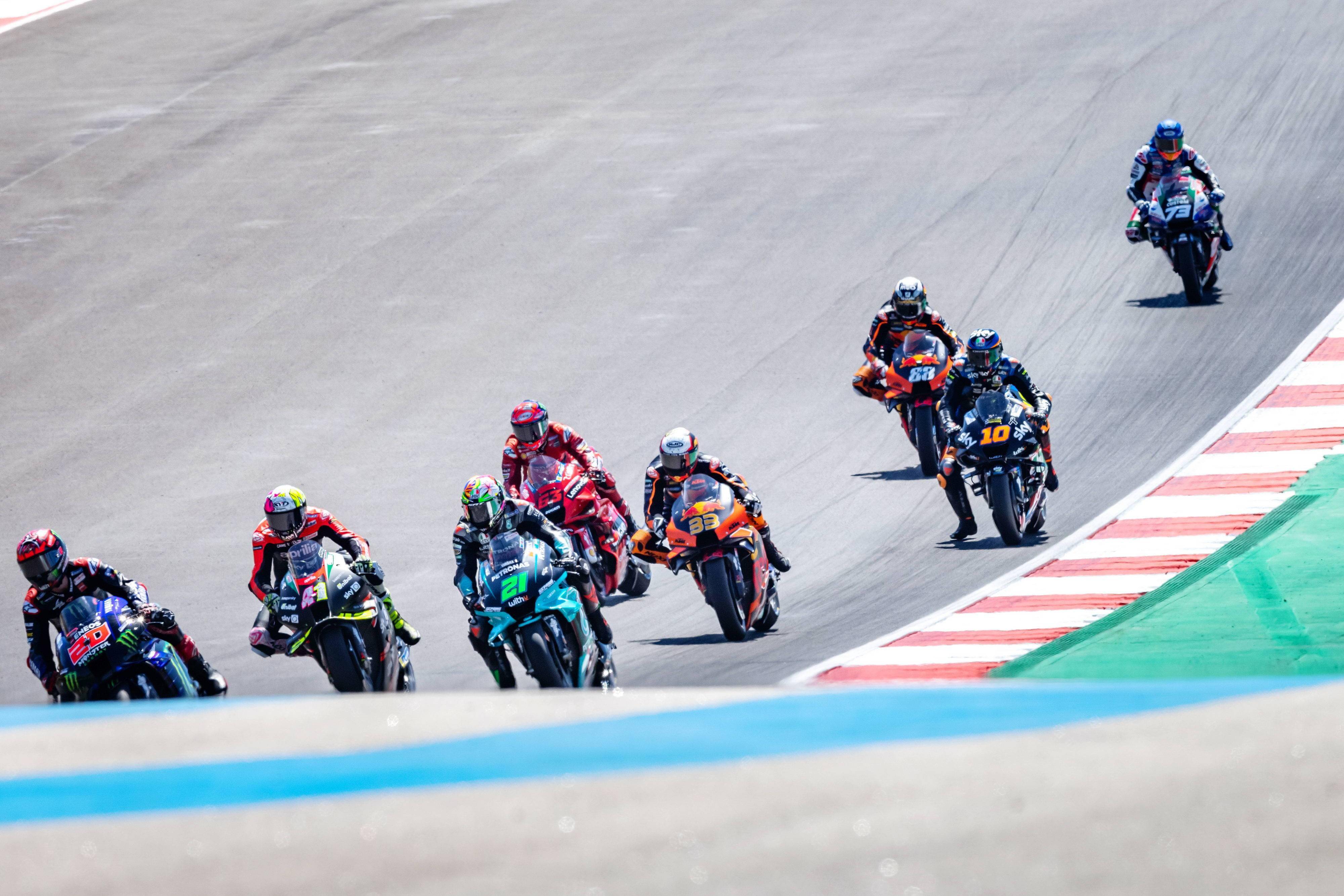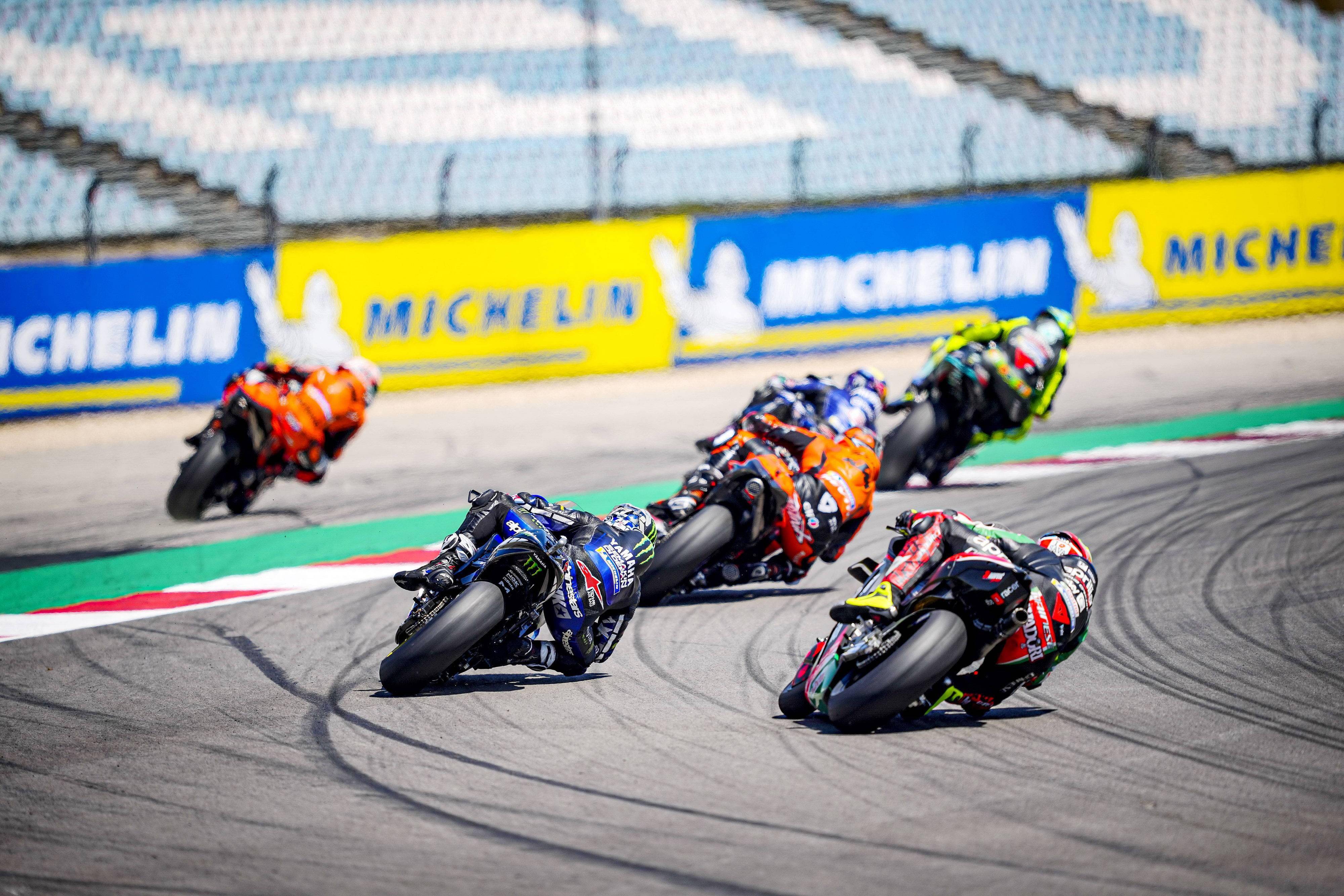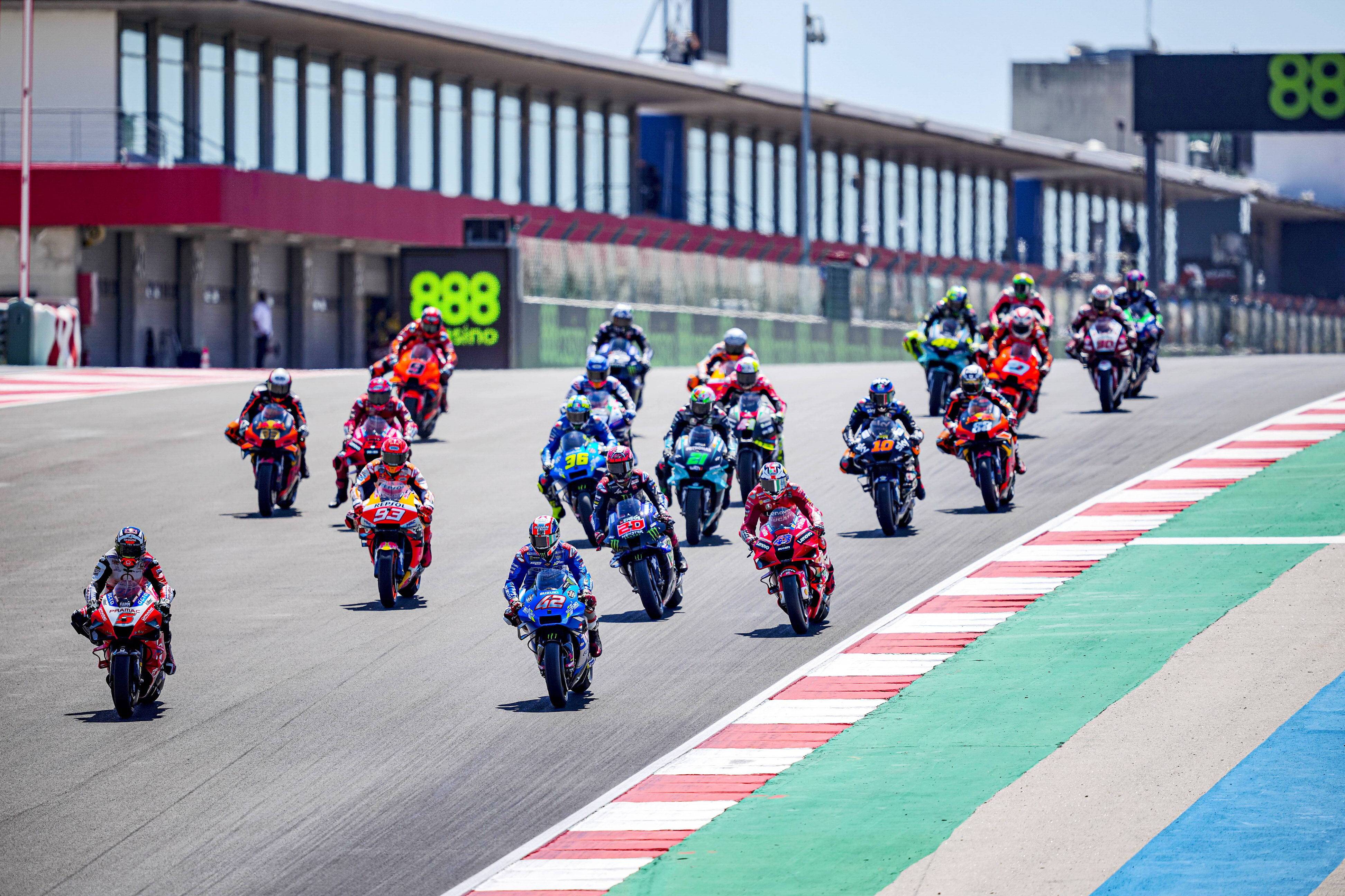 MotoGP 級別的賽程為 25 圈、折合 114.8 公里。起步之后,扎科和 Suzuki 兵團沖到了前面,帶頭進入 T1,隨后是蜂擁而至的車群。