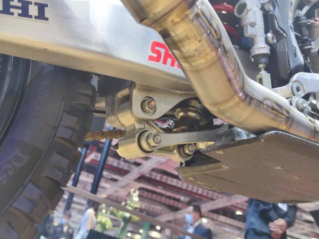 為了滿足長(zhǎng)距離行程 ,這款車上配有多個(gè)油箱,油箱總?cè)莘e34.7L。減震系統(tǒng)來(lái)自Showa,前減震行程310mm,后減震行程305mm。