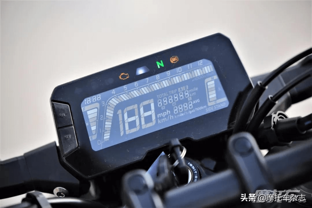 但在其它配置上,這款車就有意思了,CB300R配有這個級別中少有的IMU慣性傳感器,同時在液晶儀表上除了常規(guī)信息顯示和油耗顯示之外,還有一個計時功能,這在一般的街車上并不常見。在細節(jié)配置上,這款車的軸距只有1355mm,整備質量只有145kg,要知道擅長減重的KTM 250 DUKE的凈重還有149kg,此前并不擅長減重的Honda將一款街車做得如此之輕確實讓人意想不到。所以從配置上不難發(fā)現(xiàn),CB300R絕不僅僅是看上去這么簡單。