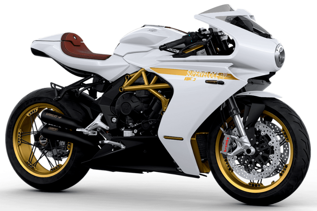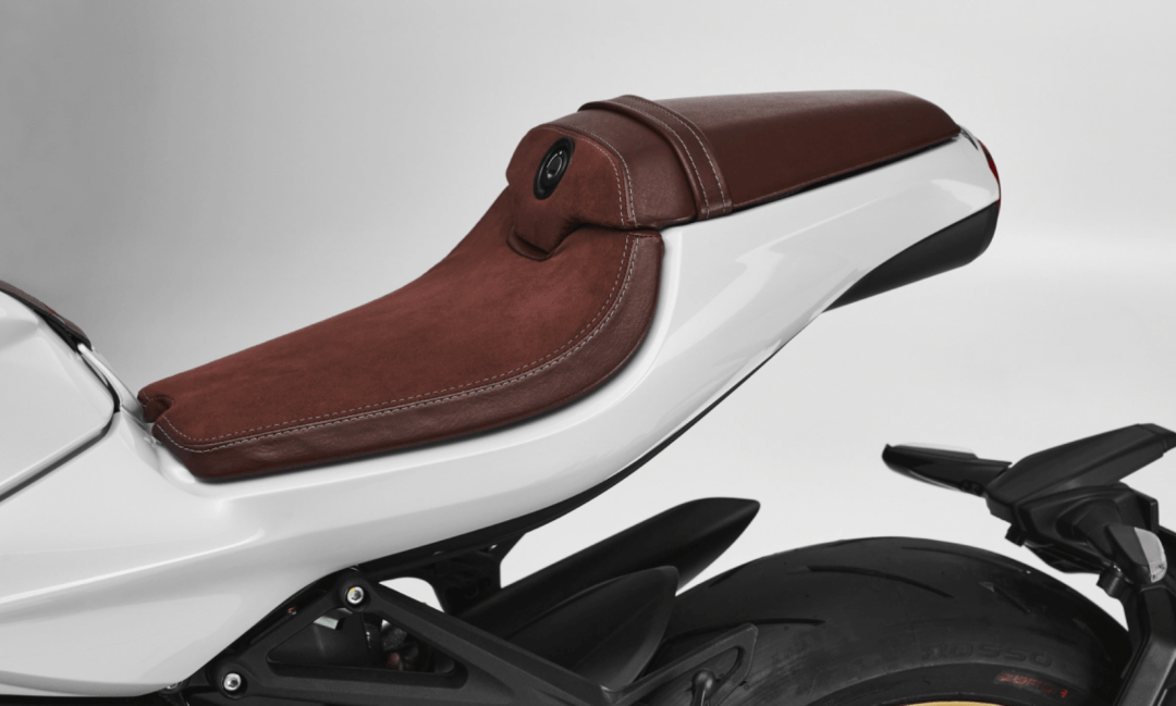 這次新發(fā)布的Superveloce S相比于同車系主要體現(xiàn)在外觀上的不同。車身珍珠白烤漆搭配金色的車架,車身上的涂裝和輪轂也采用了非常富貴的金色,同時輪轂也采用了更加復(fù)古的輻條輪轂。坐墊還使用了棕色的Alcantara麂皮打造,還可以換裝Race套件里的駝峰蓋,讓這款車更具Cafe Racer風(fēng)格。整臺車完全可以用絕美、驚艷來形容,23600歐元的售價也襯托出 SuperveloceS尊貴的氣息。愛......愛不起。