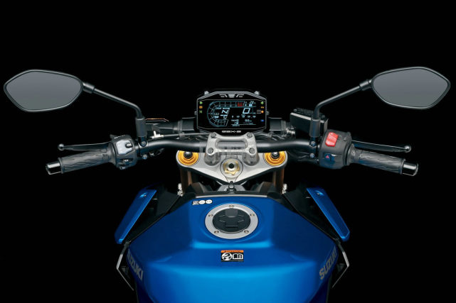 GSX-S1000的車架保持不變,但車把的寬度增加了23毫米。此外,車把略微向上調(diào)整,使車把更靠近駕駛員(向后20毫米),因此有助于得到更直立的坐姿,新款座高為810mm,后座可以選裝駝峰。