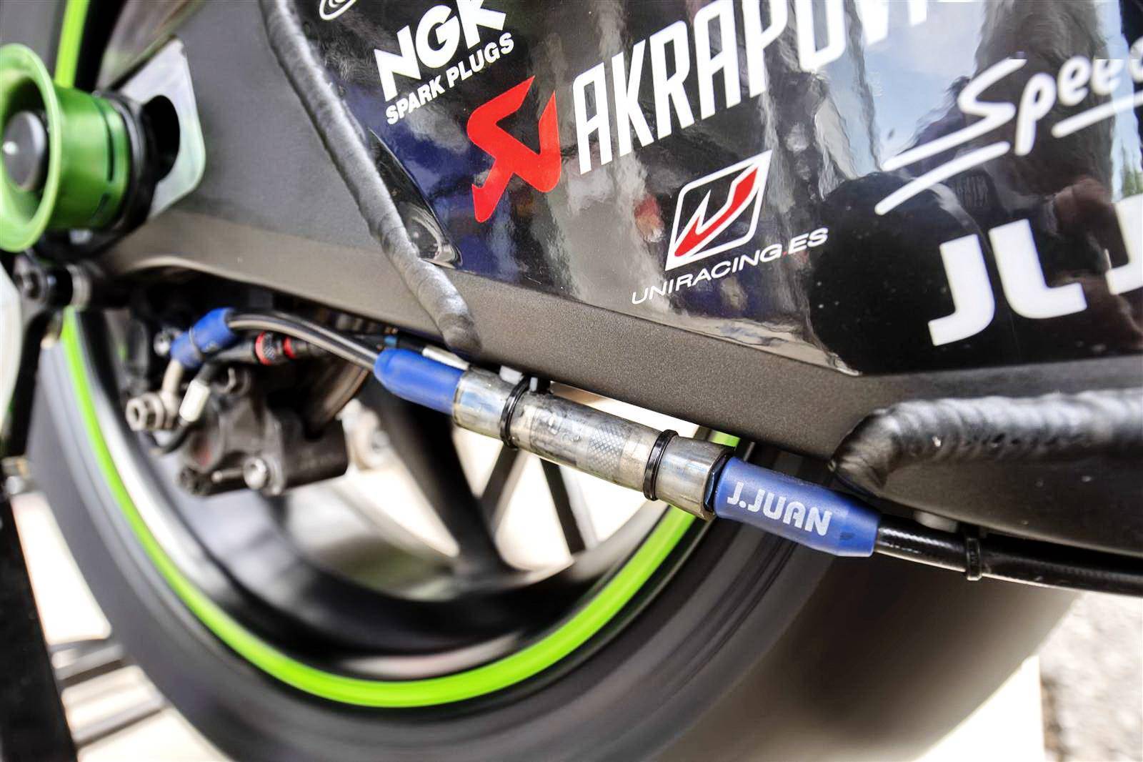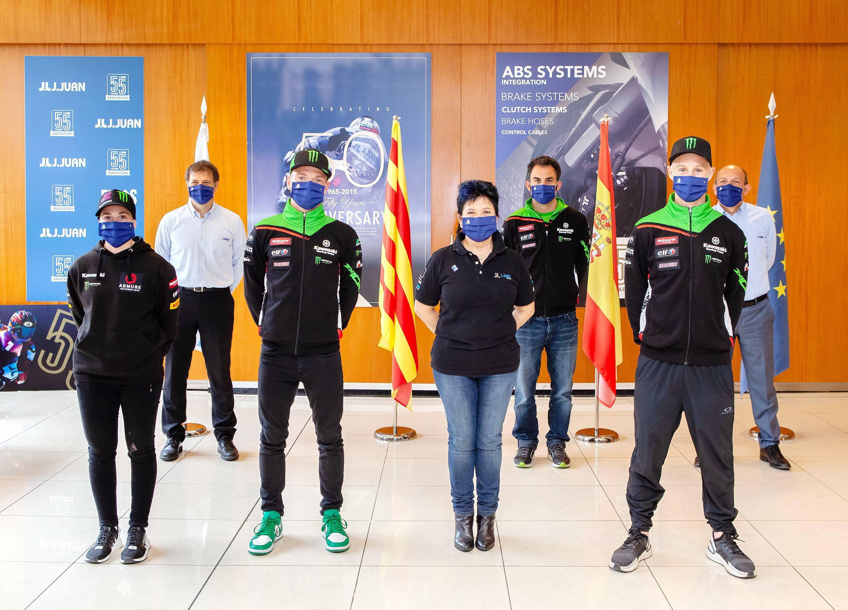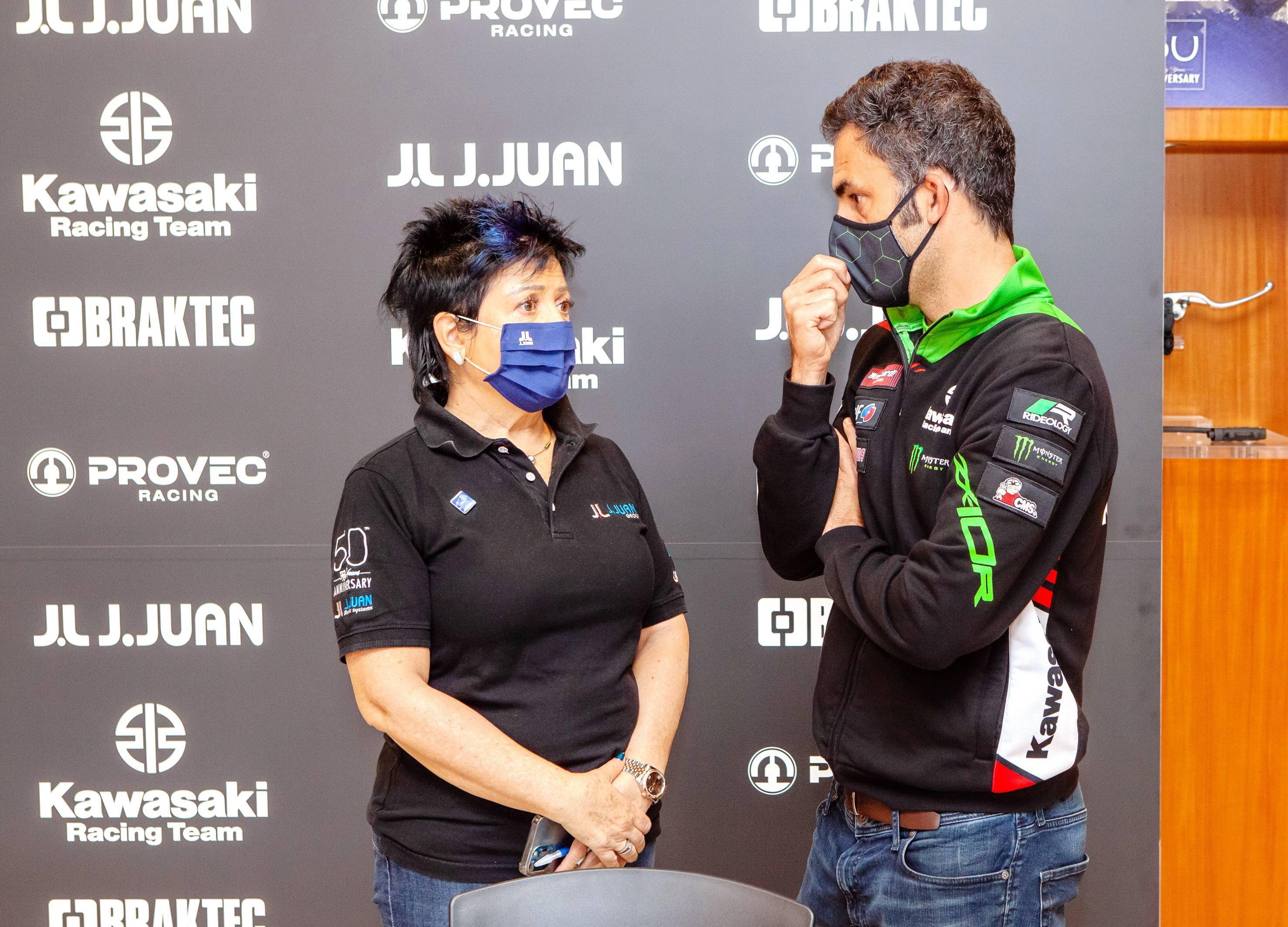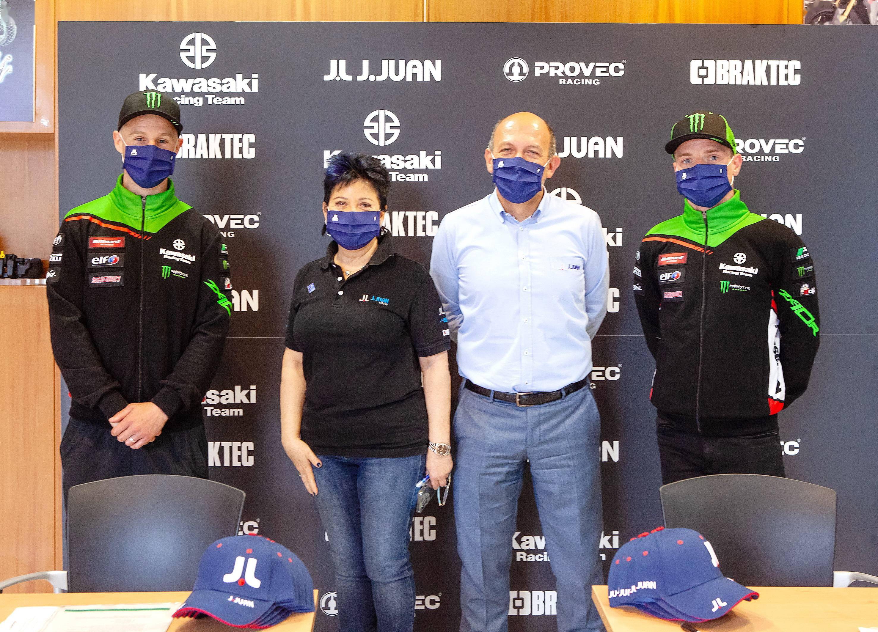 下面的圖片,KRT(Kawasaki WSBK 工廠車隊)在四月 21 日的時候,宣布與 J.JUAN 達成了為期兩年的合作協議,J.JUAN 將為 KRT 提供制動油管方面的技術支持。而 J.JUAN 現任首席執(zhí)行管(CEO)Jose Luis Juan 女士,以及包括車手在內的眾多 KRT 成員出席了這次的發(fā)布會。