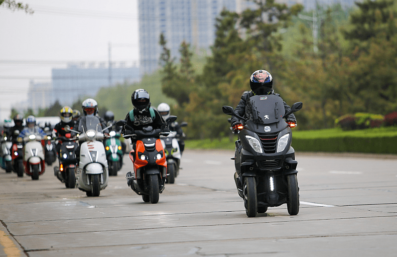 4.24日一早,由一輛標(biāo)致Metropolis、數(shù)輛SF4、以及二十余輛DJANGO組成的車隊(duì)從南大營(yíng)出發(fā)。一路上,造型奇特的標(biāo)致Metropolis、動(dòng)感十足的SF4、兼具時(shí)尚和復(fù)古魅力的DJANGO,都引得路人紛紛駐足。