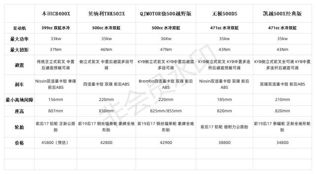 CB400X在與國(guó)產(chǎn)同價(jià)位競(jìng)爭(zhēng)對(duì)手對(duì)比之后,配置方面更是顯得有些力不從心,在避震規(guī)格、輪胎規(guī)格、剎車規(guī)格方面處于較大劣勢(shì),可以說通過性和越野性能被全面碾壓。就算現(xiàn)在CB400X的最終價(jià)格沒有正式公布,但是超過四萬應(yīng)該是毫無懸念,所以性價(jià)比是CB400X另一個(gè)硬傷。