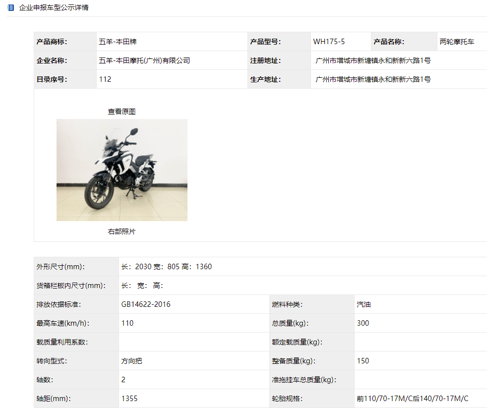 新款CB190X外形尺寸為2030*805*1360(mm),對(duì)比現(xiàn)款寬度和高度略有減少,軸距保持1355mm不變。發(fā)動(dòng)機(jī)依舊是184mL排量單缸發(fā)動(dòng)機(jī),公告中最大功率12kW,比現(xiàn)款11.7kW的最大功率略有增加。新款CB190X也配有ABS防抱死系統(tǒng),公告中涉及的ABS企業(yè)有日信和杭特,可能會(huì)升級(jí)雙ABS或者分版本供應(yīng)。因?yàn)橥庥^件的調(diào)整和配置的改變,整備質(zhì)量從148kg來到150kg,目前尚不清楚儀表等配置是否會(huì)有更新。值得一提的是,新款CB190X也做了摩旅版的公告,原車配有鋁合金三箱、護(hù)杠、護(hù)手等配置。