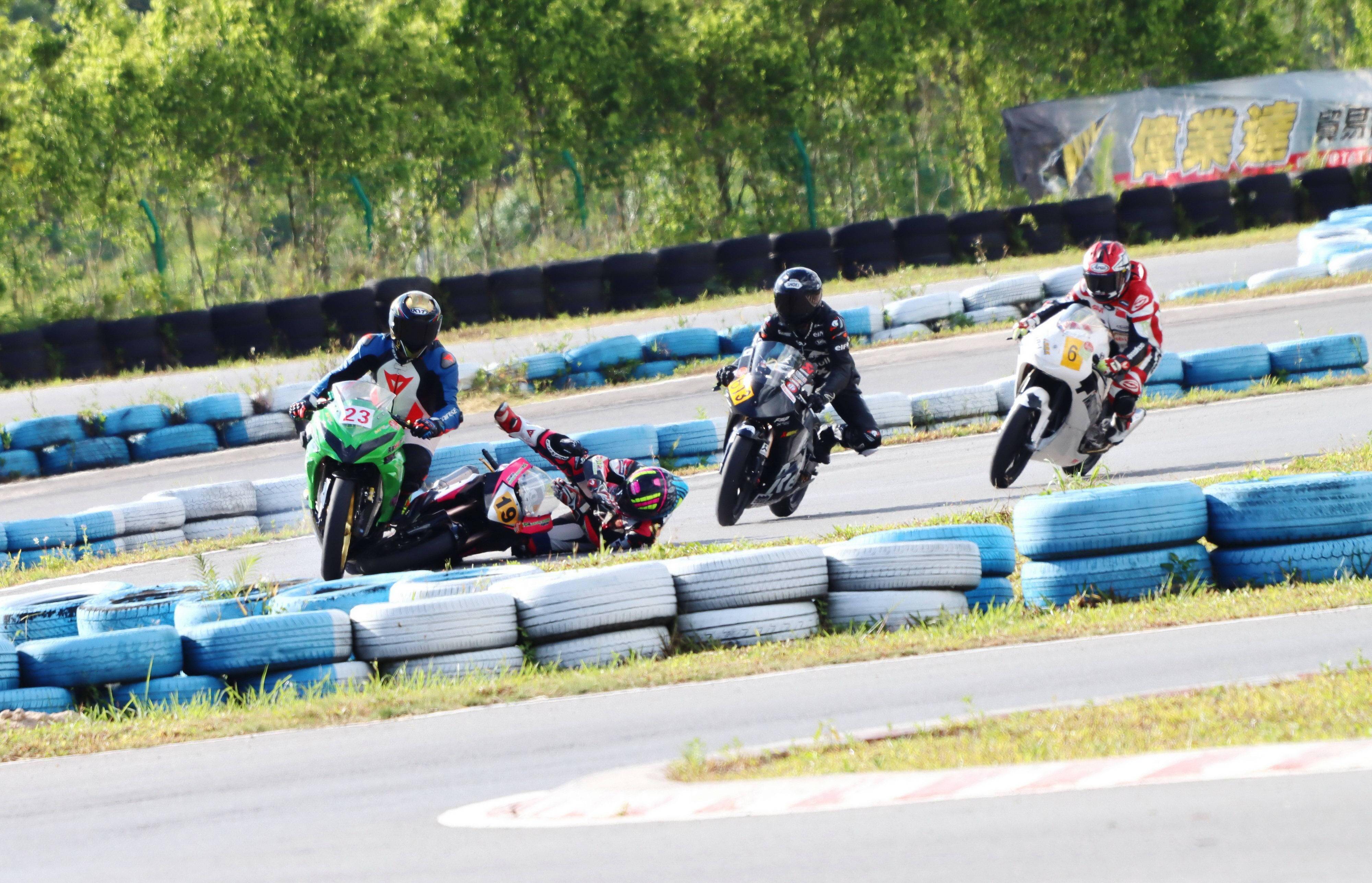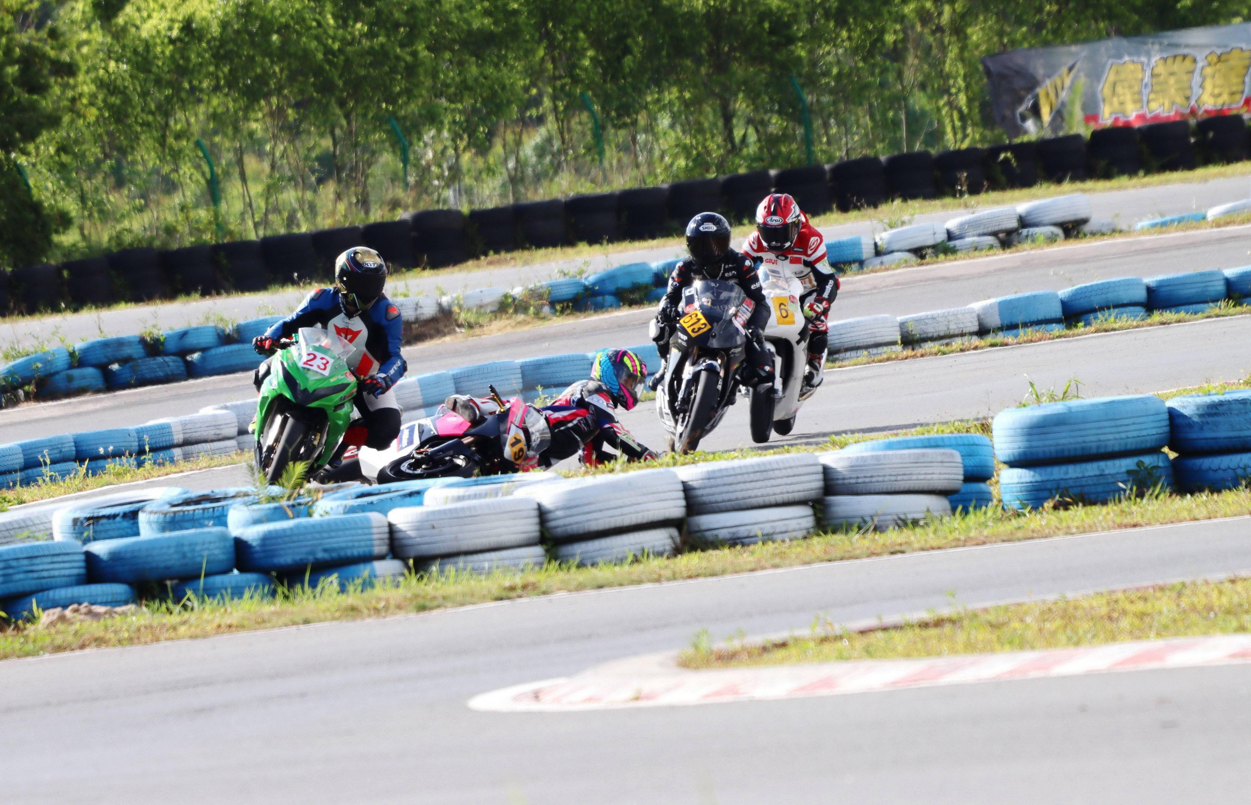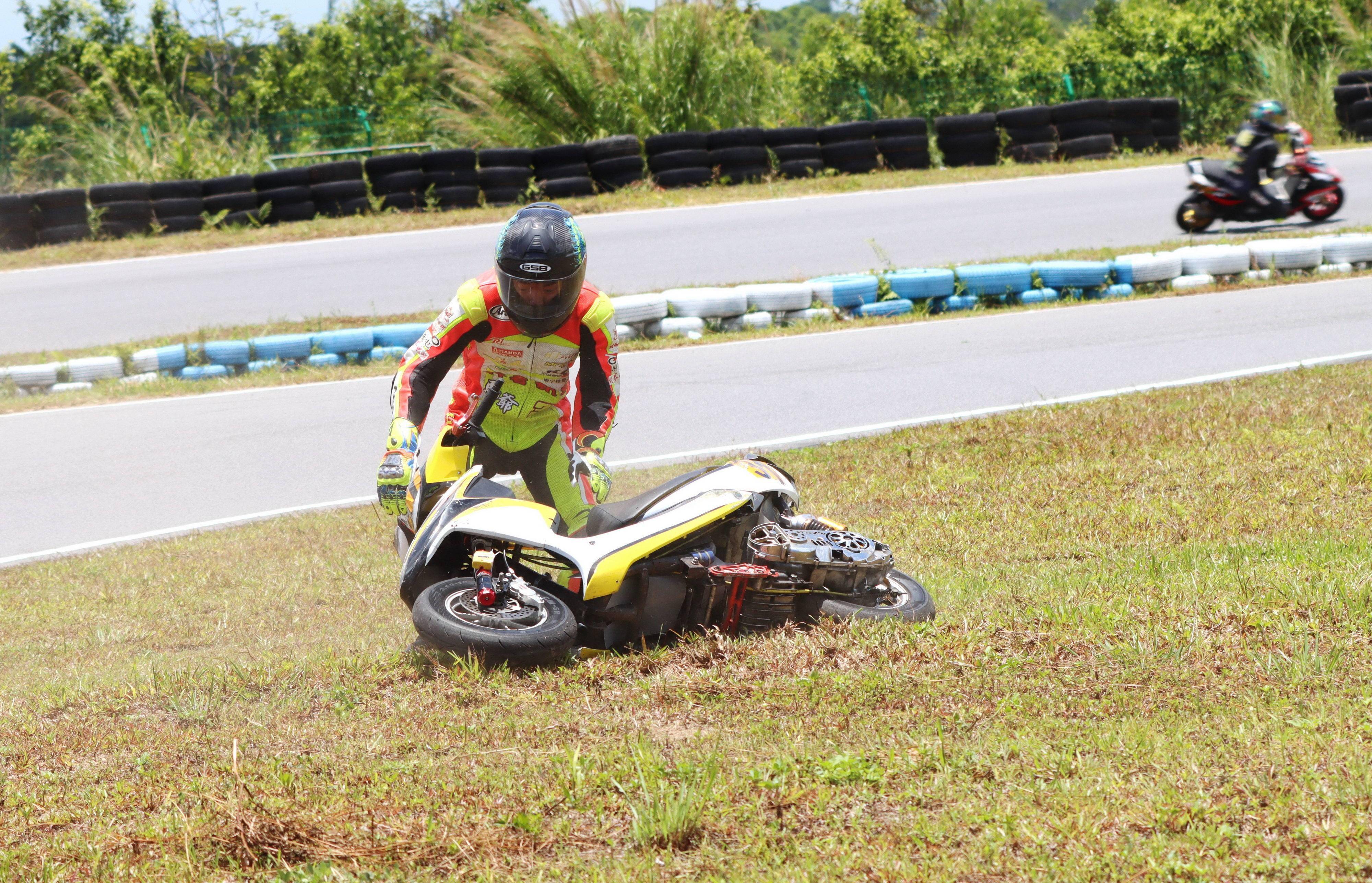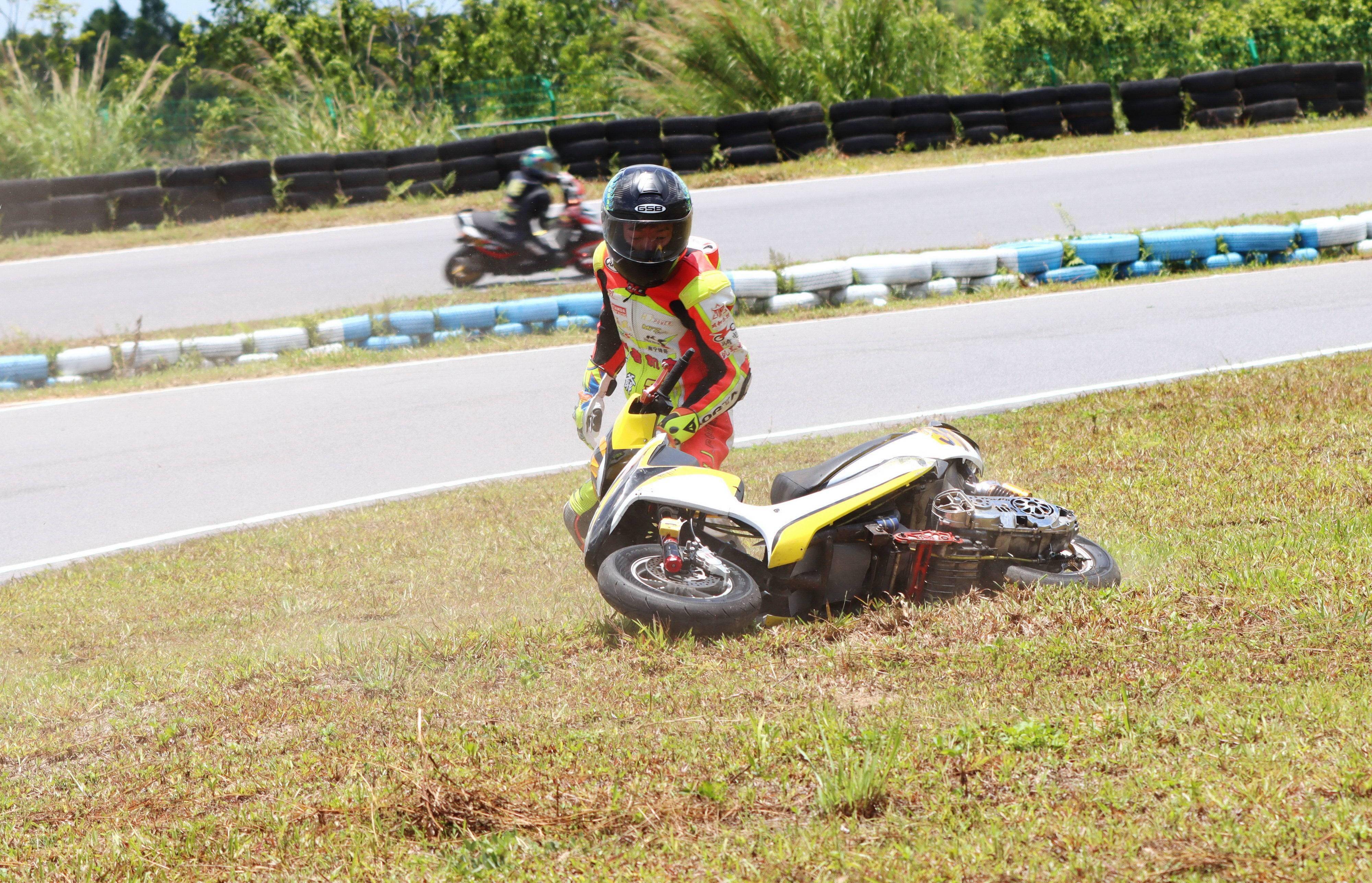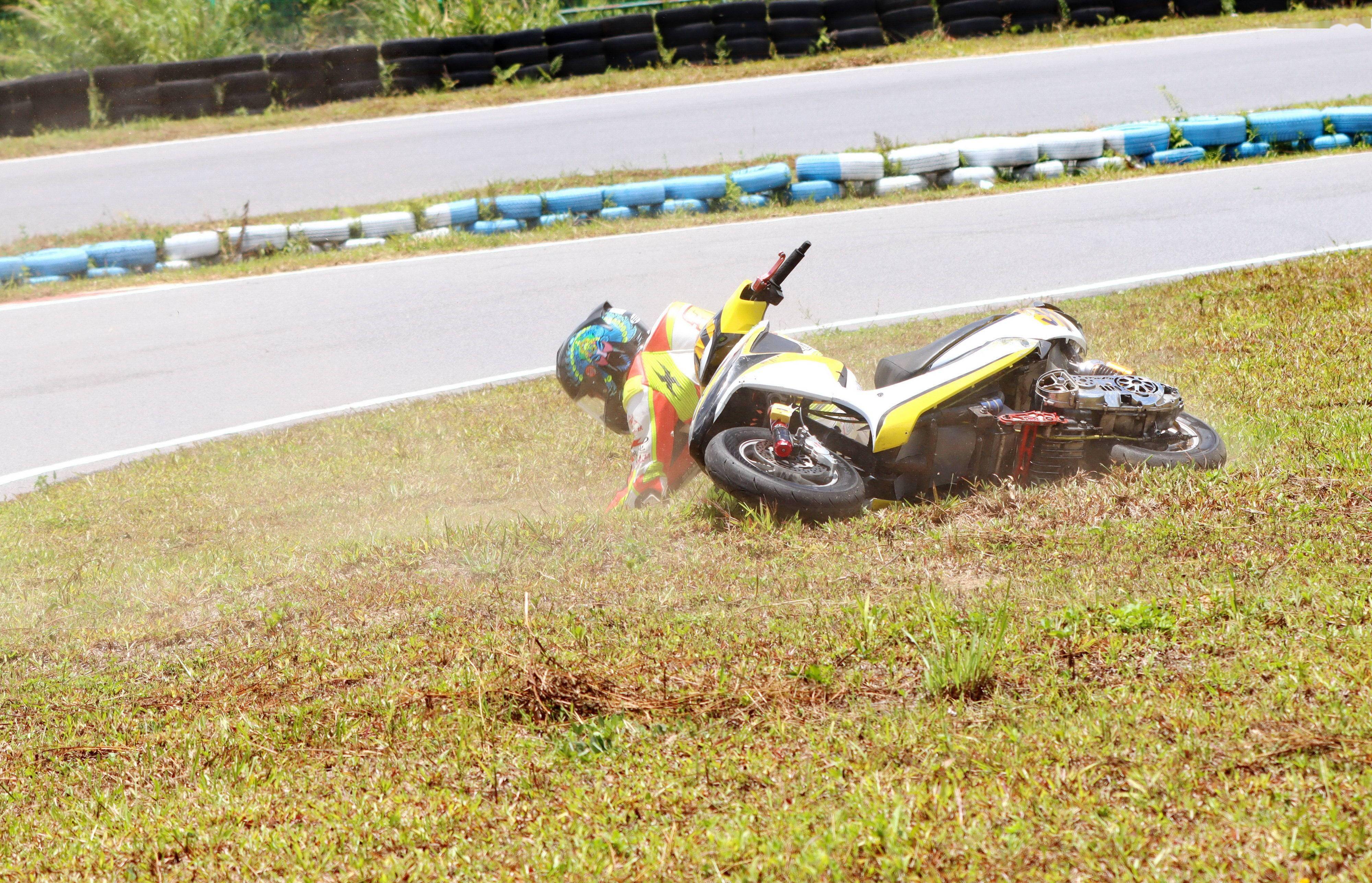 下面的圖片,2021 偉業(yè)達 GP、大灣區(qū)摩托車大賽,多個組別的賽事、發(fā)生摔車的瞬間。