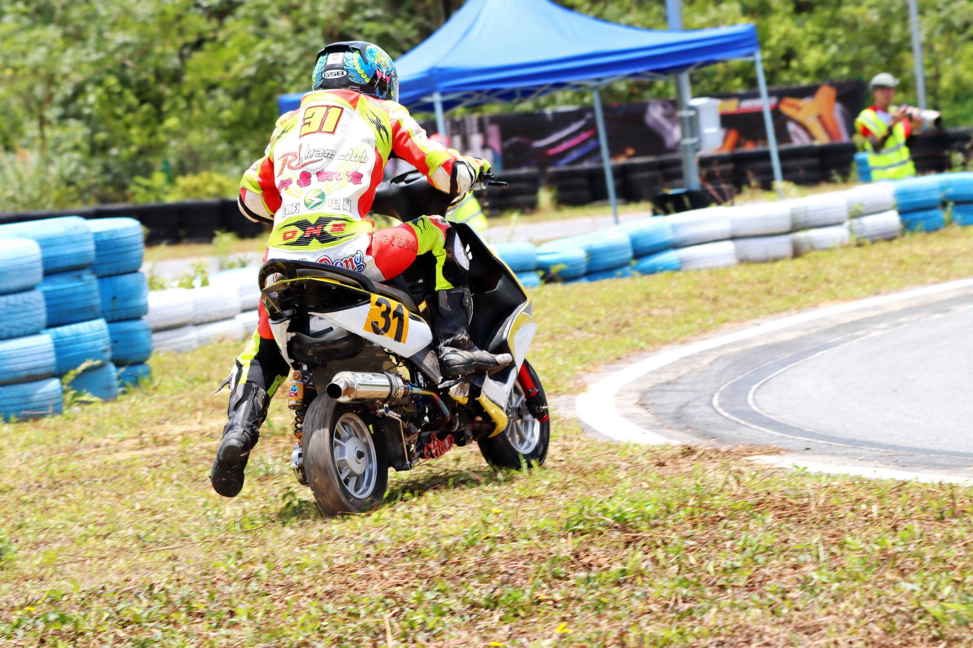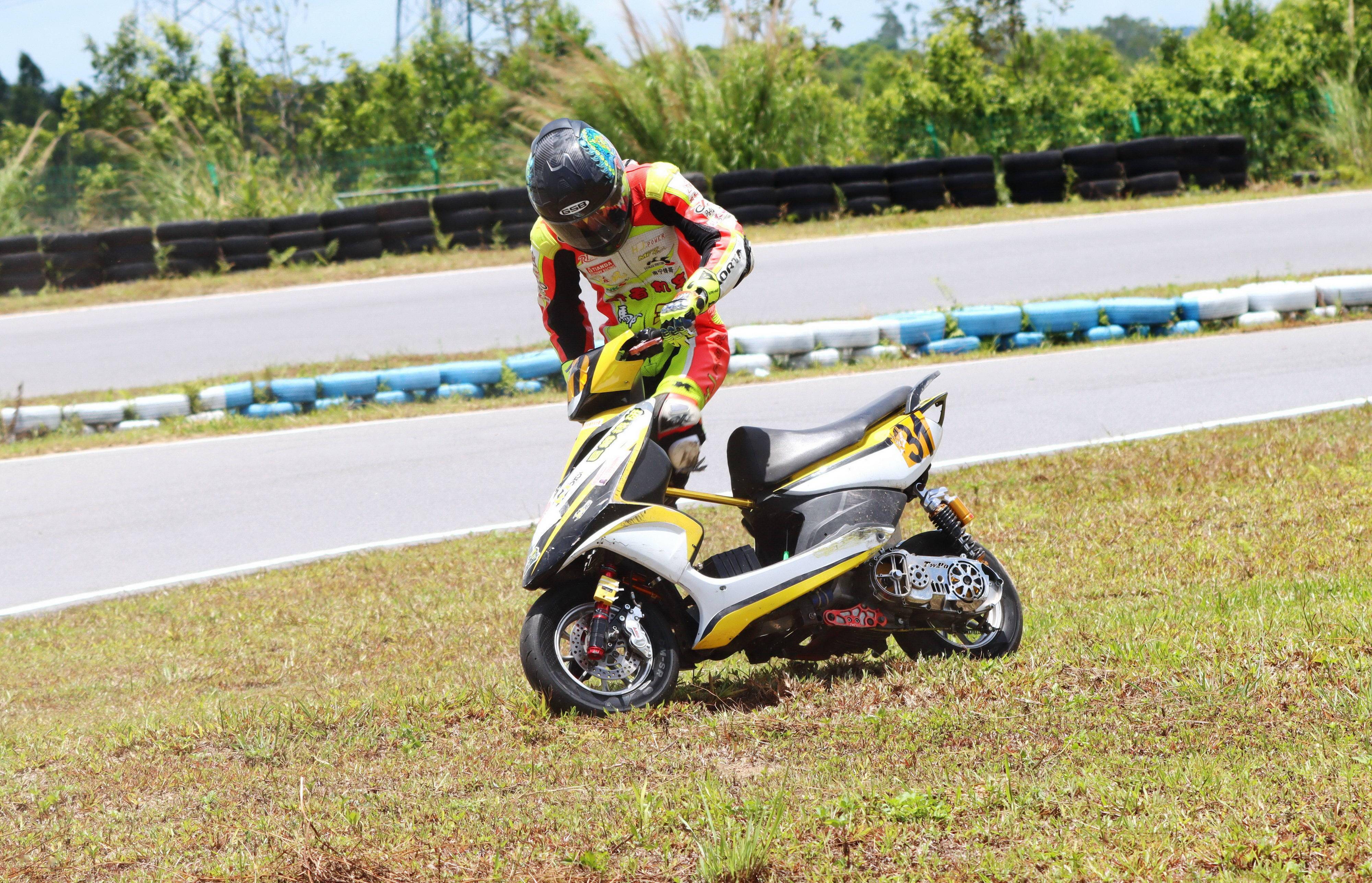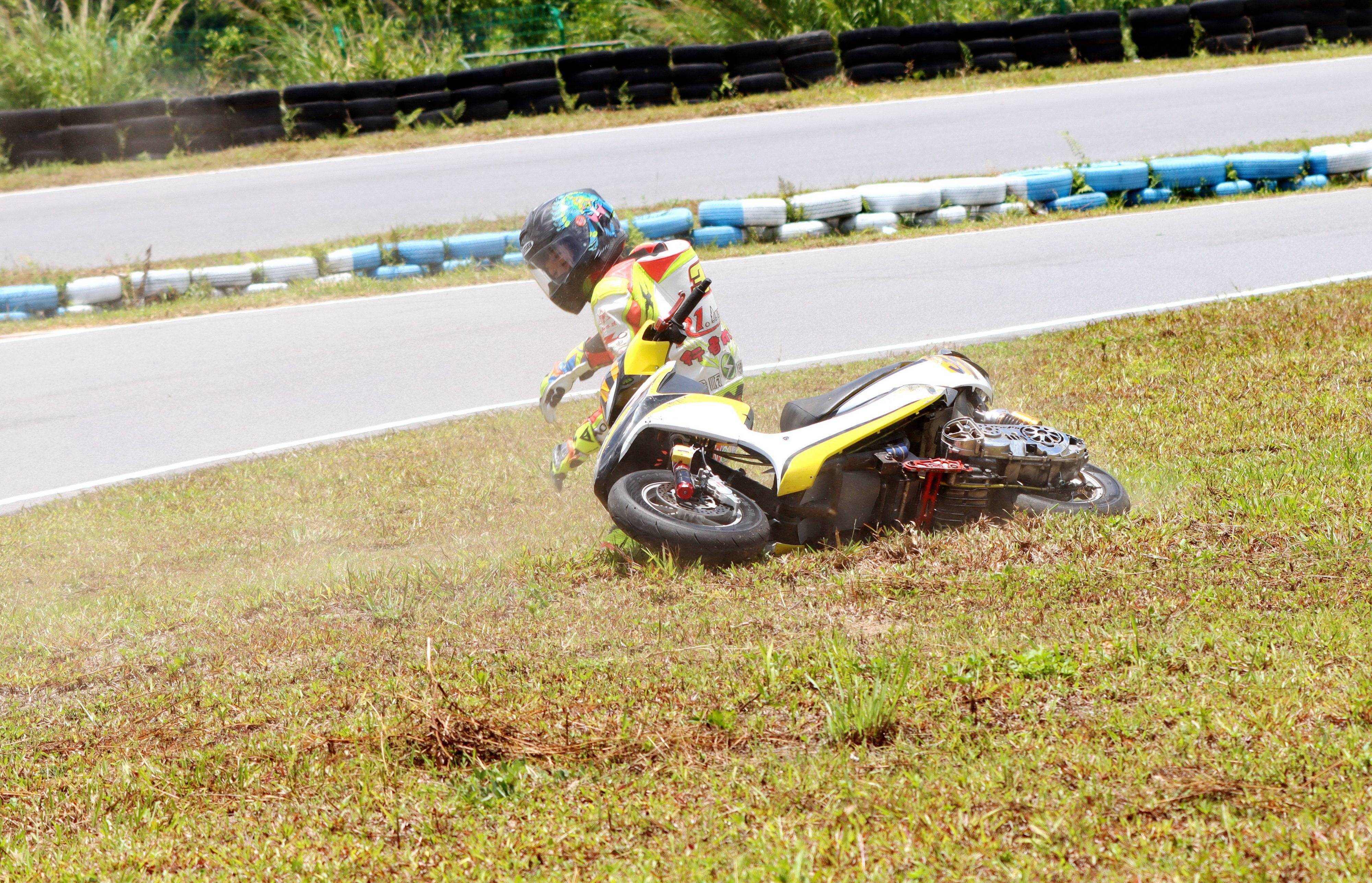 十一個競賽組別、綜合成七大類別的比賽,每個類別進行兩節(jié)的較量。在曲折多彎的小型賽道,高速之下、任何的一個不慎就能導致摔車。