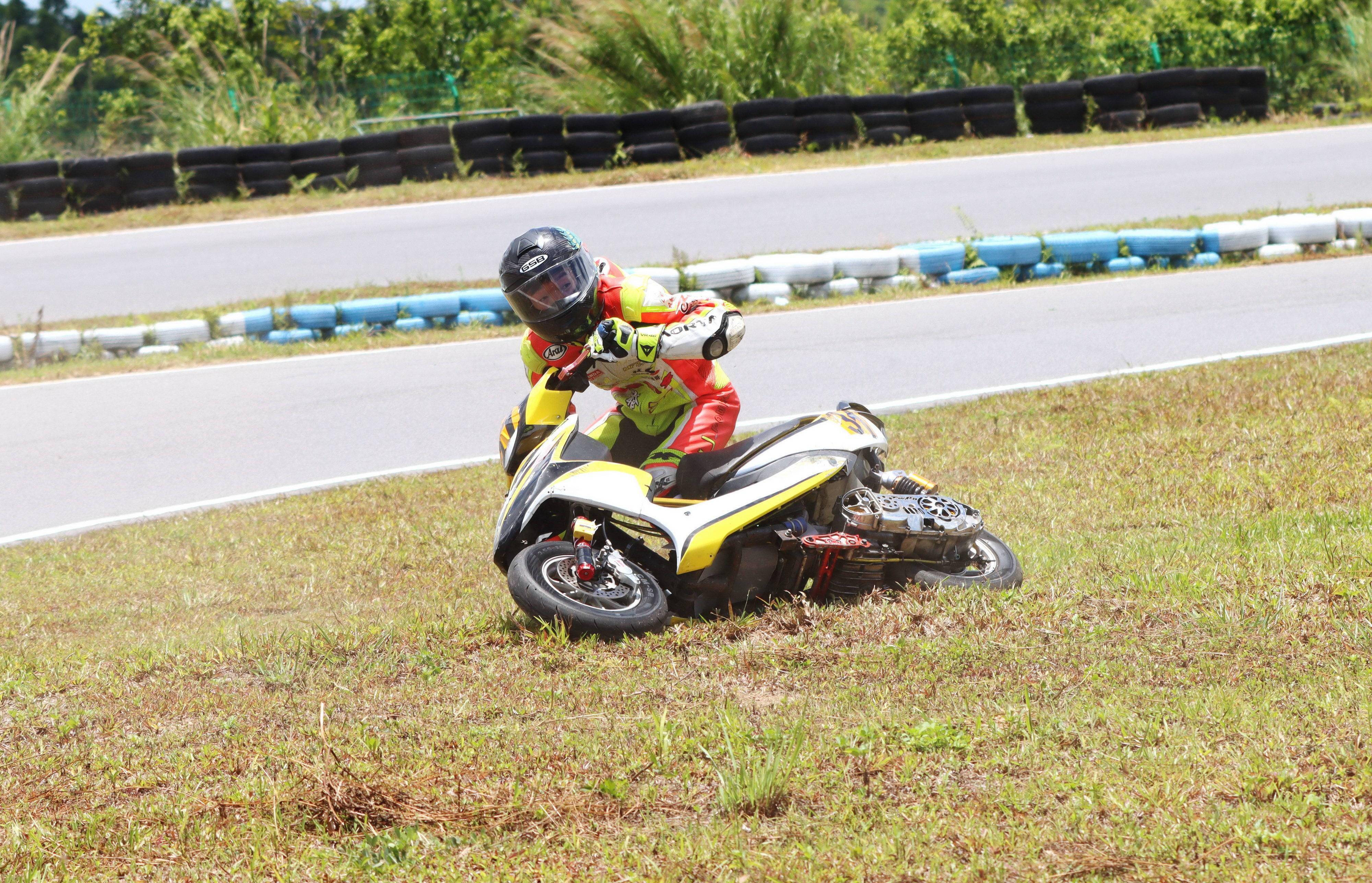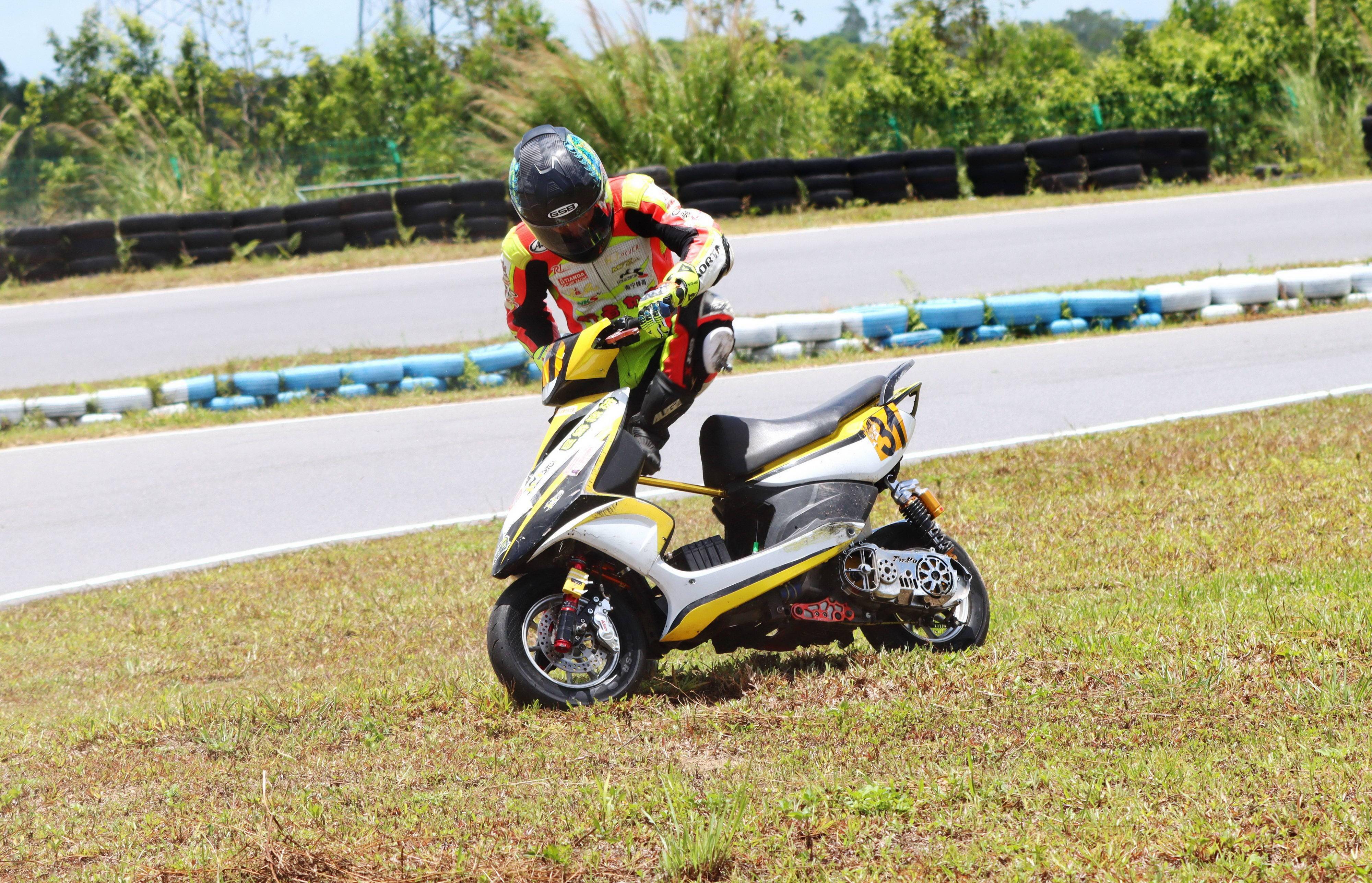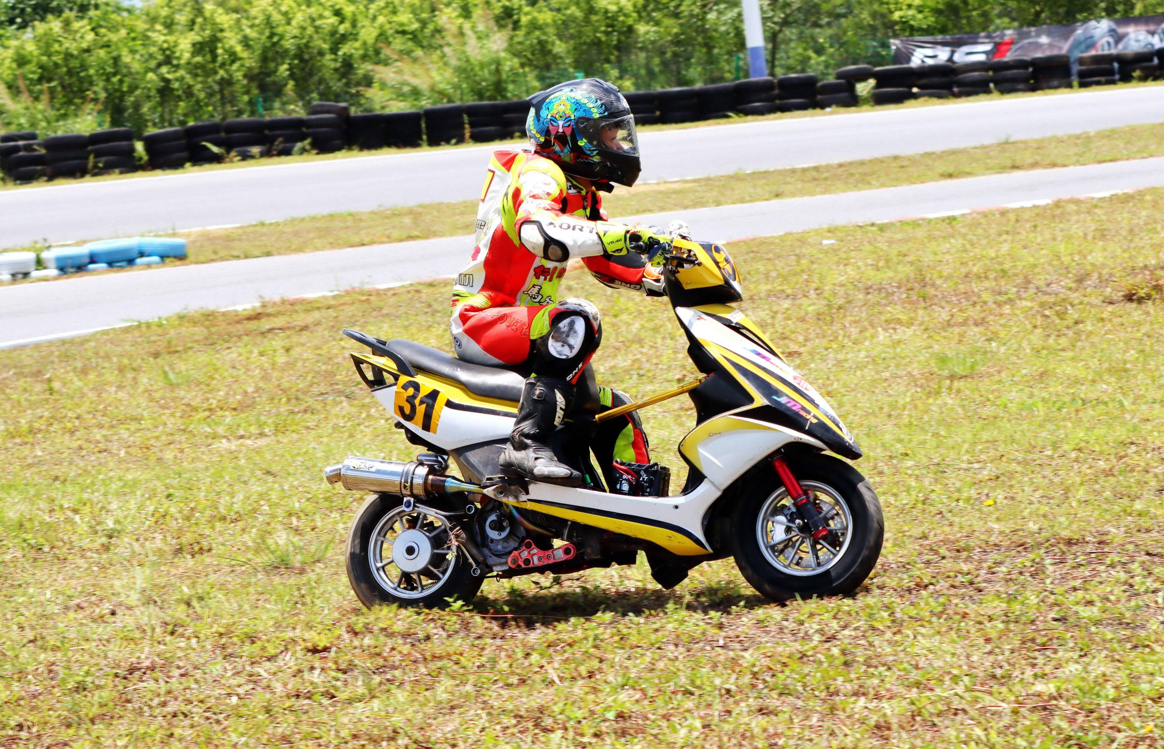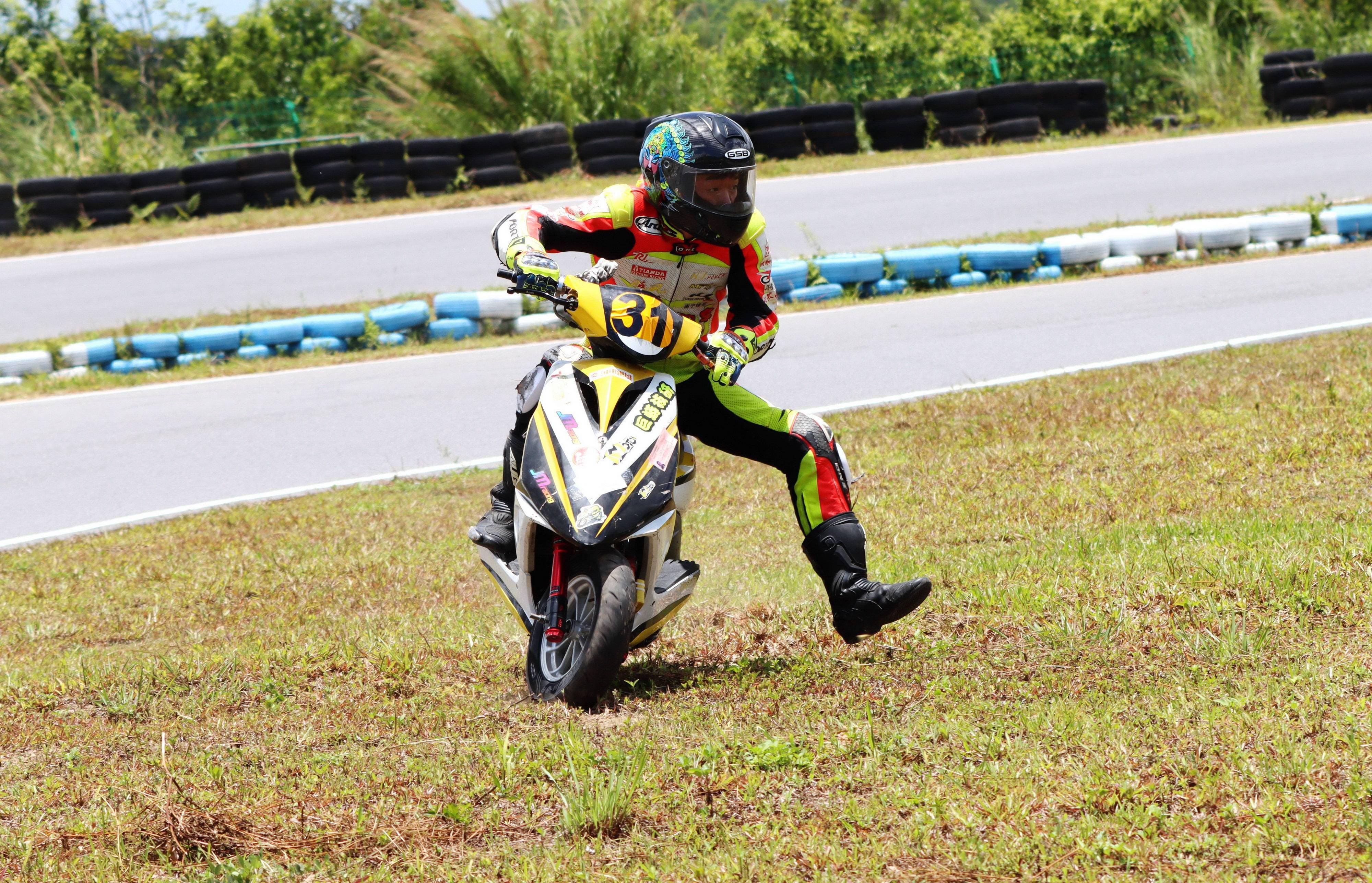 十一個競賽組別、綜合成七大類別的比賽,每個類別進行兩節(jié)的較量。在曲折多彎的小型賽道,高速之下、任何的一個不慎就能導致摔車。
