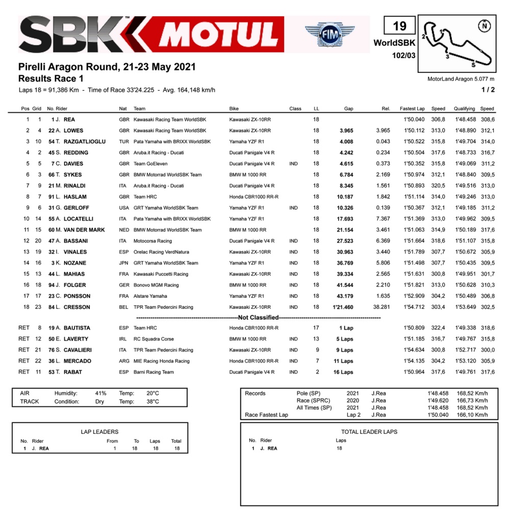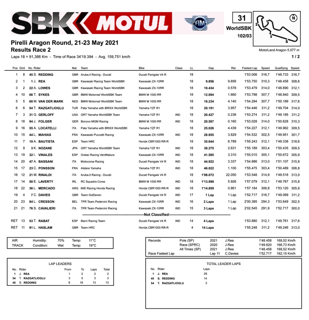 FIM WSBK 世界超級摩托車錦標賽 2021 賽季的第一站比賽,五月 21 - 23 日,在西班牙 Aragon 阿拉貢賽車場舉行。