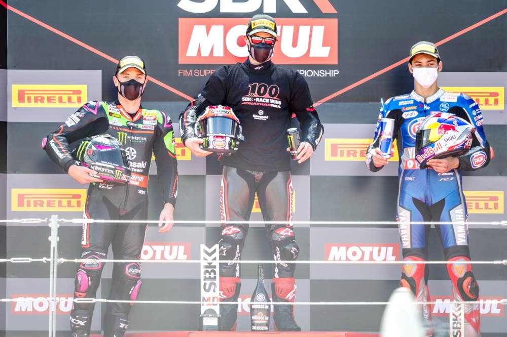 進入下半場,保持著一個良好節(jié)奏的雷亞、一點一點地把領先優(yōu)勢擴大。最終,摔先沖線的他奪得了新賽季第一節(jié)比賽的勝利,同時也拿到了他在 WSBK 里面的第一百個冠軍。