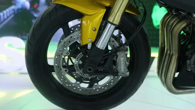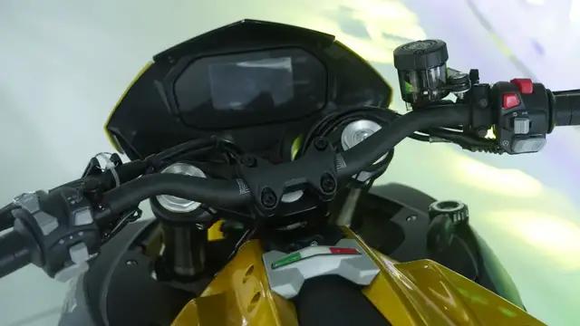 1209cc直列三缸水冷引擎,最大功率100kw,與之前摩博會展出的樣車不同的是儀表,升級為了一塊大尺寸的TFT全彩液晶儀表。