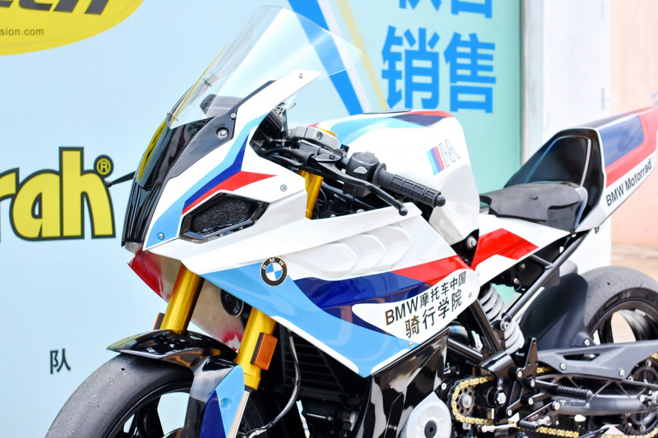 核心提示:日前在珠海賽車場內(nèi),看到了下面的這臺經(jīng)過改裝、主要用于賽道訓(xùn)練班所使用的 BMW Motorrad 寶馬 G310 R跑車版 。標(biāo)準(zhǔn)狀態(tài)下的 G