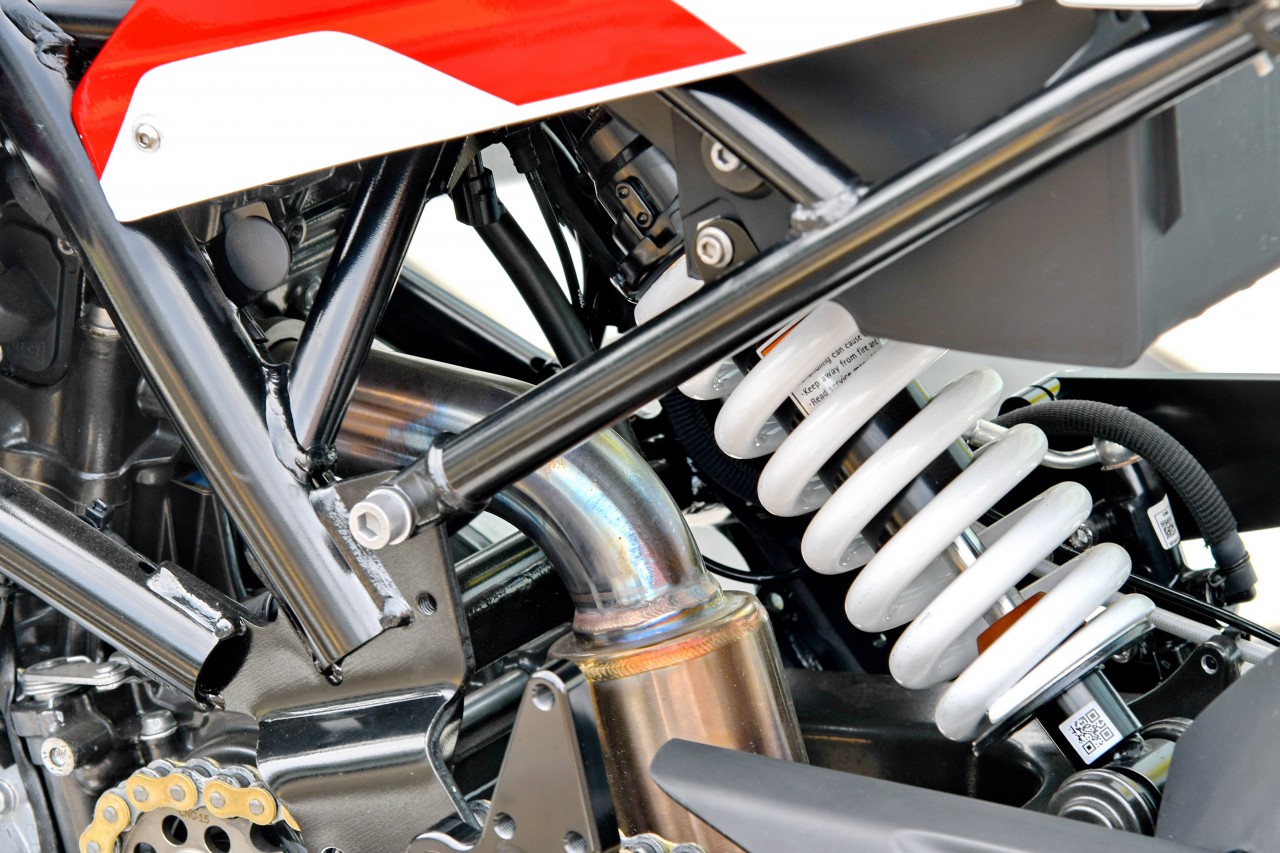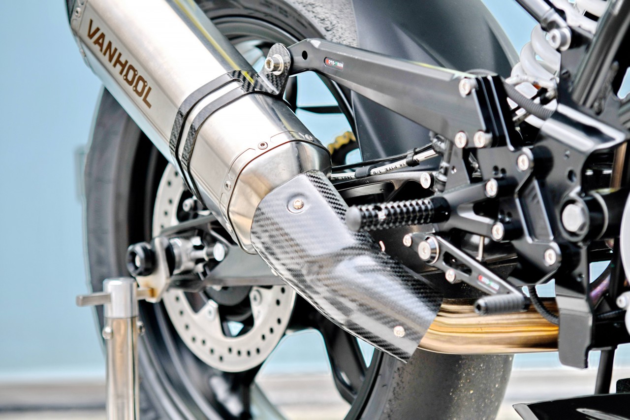其他的改動部分,包括換裝了賽道適用的前后輪胎,改裝排氣系統(tǒng)、升高的 Moto-Tron 腳踏等。