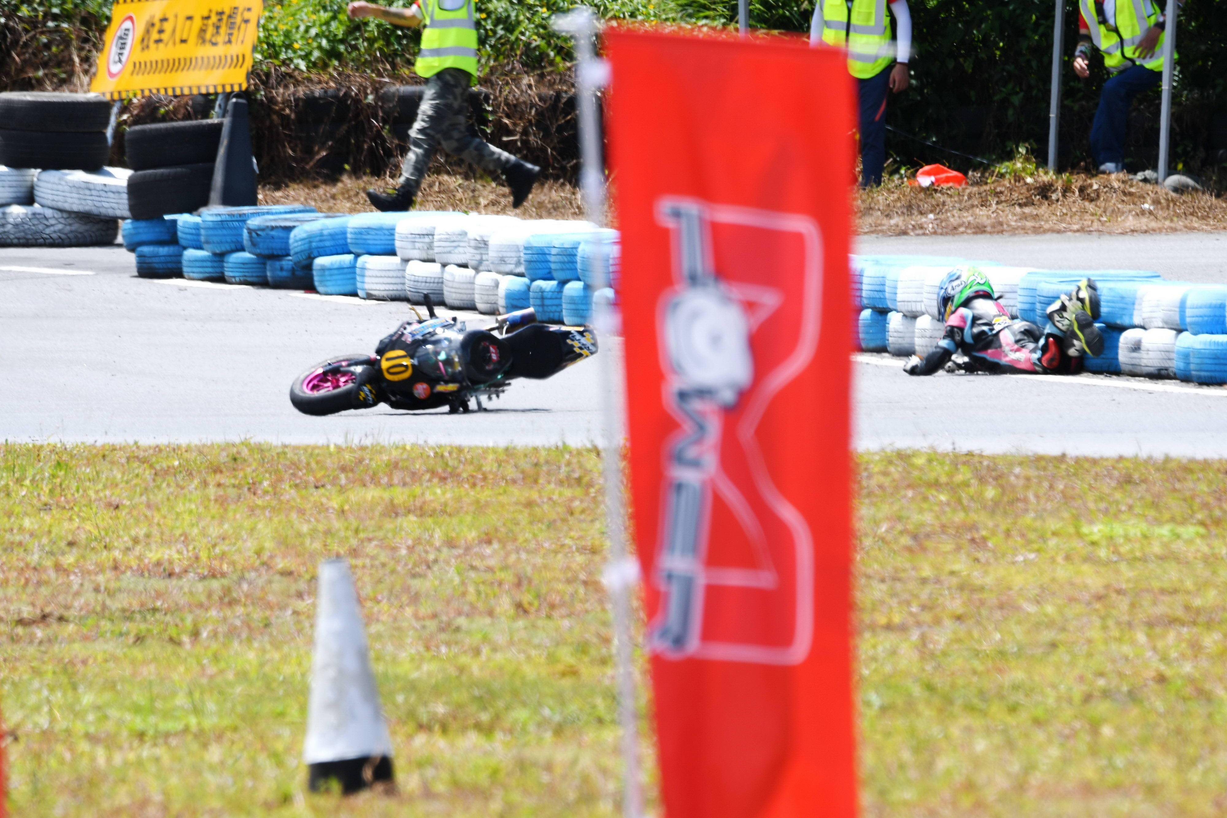在比賽第一圈快要結(jié)束的時候,期待中大戰(zhàn)消失了 —— 在最后一個彎之前,嘗試超越陳芷瑤的佳錫,因為車頭碰到了前車的尾部而摔倒,耗費了不少時間,才啟動賽車并重新回到跑道中,但已經(jīng)失去了挑戰(zhàn)冠軍的機會。