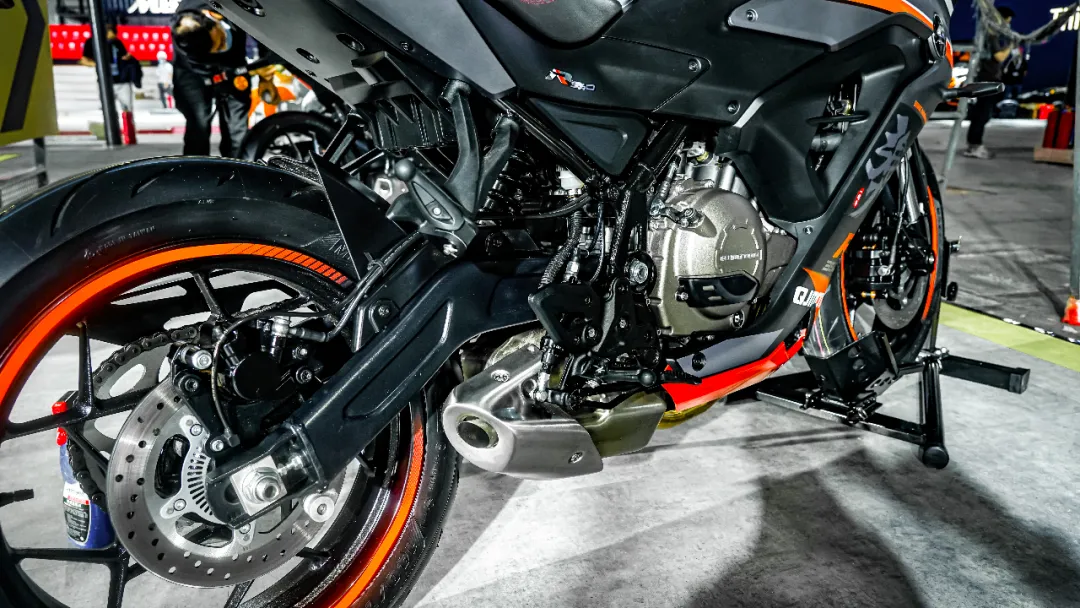 和賽250同時發(fā)布的賽350,賽350更低的頭部,更翹的尾部,從頭到尾,呈現(xiàn)出符合賽車特性的傾斜設計,則采用353cc并列雙缸水冷發(fā)動機,這款發(fā)動機最大扭矩為31.0N·m/7000rpm,最大功率可達27.0kW/9000rpm,將為騎士們帶來全新的速度體驗。同時整車優(yōu)秀的空氣動力學設計、高強度的管車架設計等,也充分彰顯了車輛的純粹賽道基因。