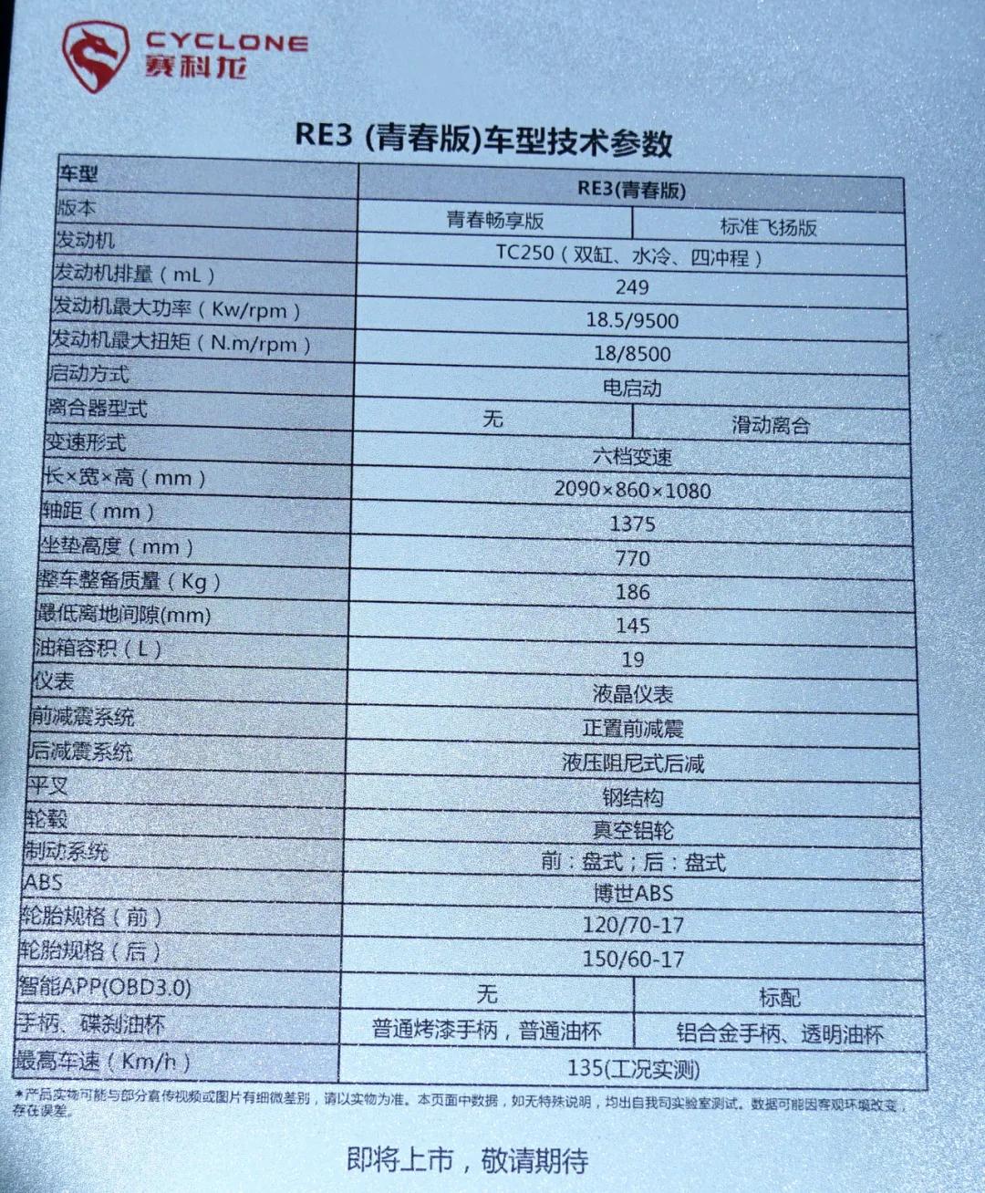 RE3青春版最主要的變化就是發(fā)動機(jī),由原來的TC400,改為宗申的TC250,依然是雙缸水冷。最大功率18.5kw/9500rpm,最大扭矩18N.m/8500rpm。