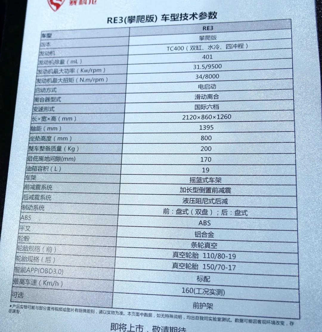 同時展出的還有RE3攀爬版,動力與21款RE3相同,依然是TC400的雙缸水冷發(fā)動機(jī),標(biāo)配了滑動離合。
