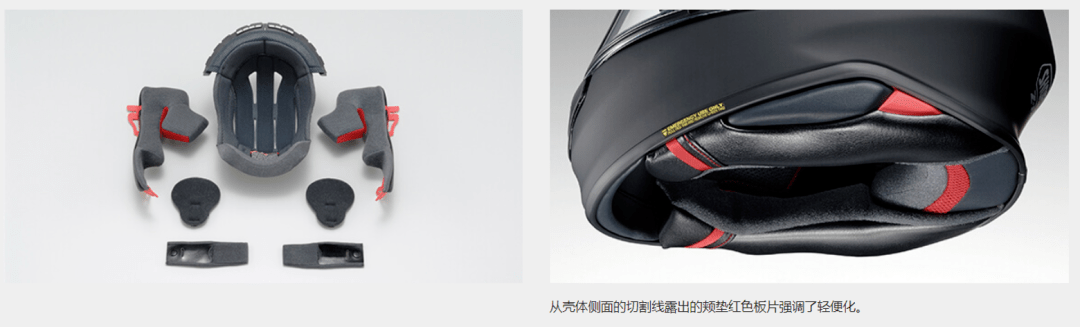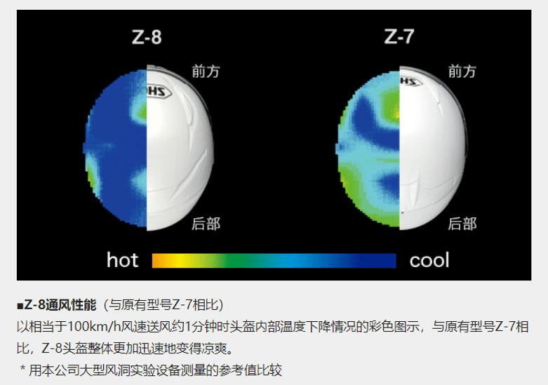 Z-8堅(jiān)持小巧和輕量化的造型,沿用了Z-7側(cè)面切割線條,但SHOEI通過先進(jìn)的大型風(fēng)洞實(shí)驗(yàn)設(shè)備及研究開發(fā)積累的數(shù)據(jù),在頭尾部分優(yōu)化了空氣動力學(xué)設(shè)計(jì),使得新盔體的向上升力減小3%,前向阻力減小5.5%。