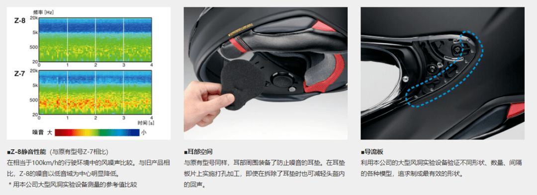 靜音性能的提升也是Z-8的亮點(diǎn)之一,新設(shè)計(jì)的CWR-F2鏡片兩端導(dǎo)流板可以降低鏡片兩端氣流紊亂而產(chǎn)生的風(fēng)噪聲。同時頰墊包覆面積更大,減少從頸部的進(jìn)風(fēng),以及新鏡座結(jié)構(gòu)帶來的密合性提高,都為靜音性能助力不少