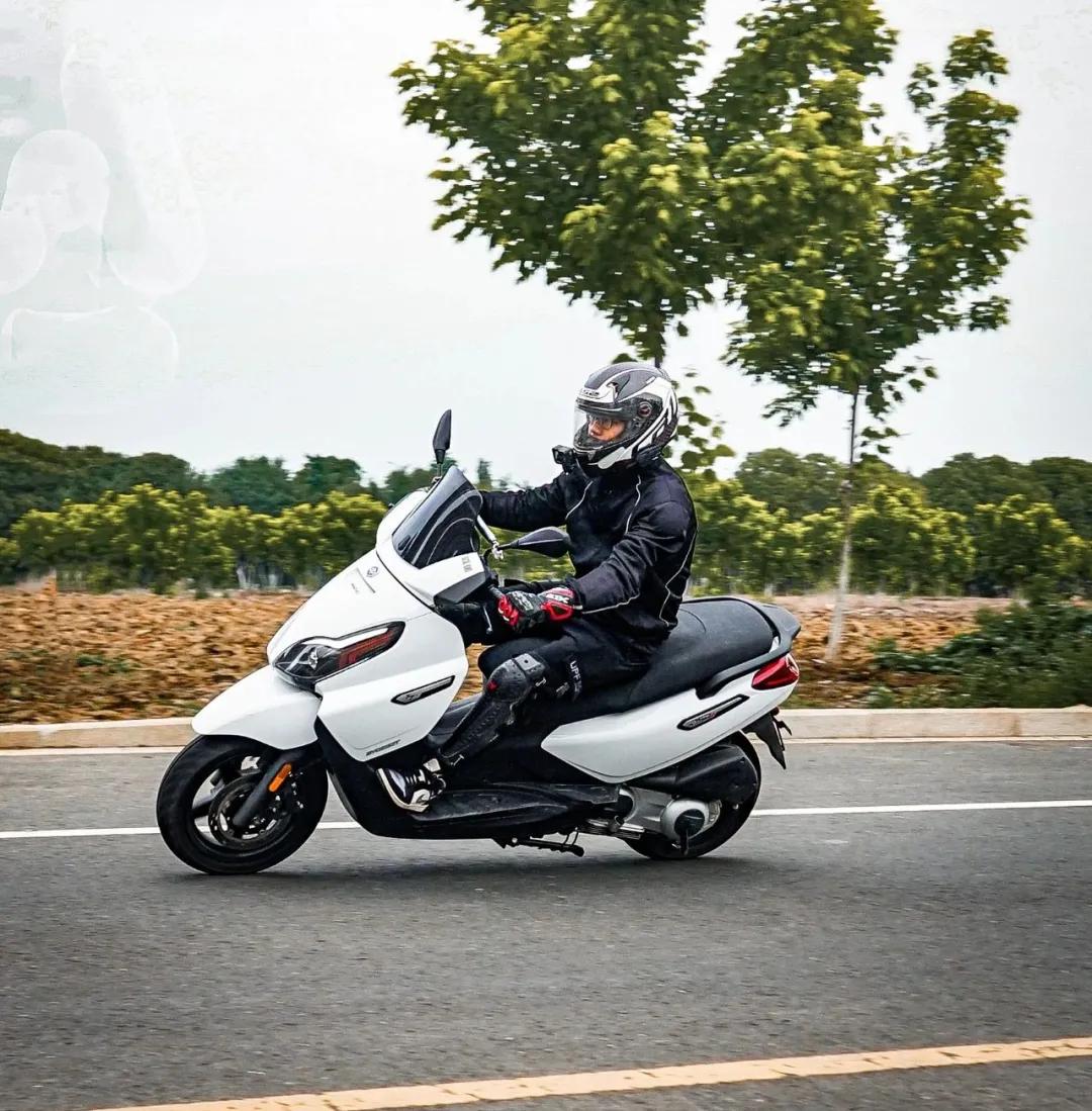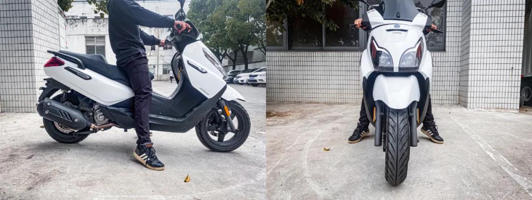 僅有182公斤的整備質(zhì)量和1480mm的軸距,在同級(jí)別踏板中是最輕最短的,騎起來(lái)左右變道非常輕巧,在城市里穿梭超車(chē),就像騎著一輛巧格一樣靈活自如,比之前測(cè)過(guò)的光陽(yáng)S350操控更加靈活,這里毫不夸張,大家可以去親自試駕體驗(yàn)一番。