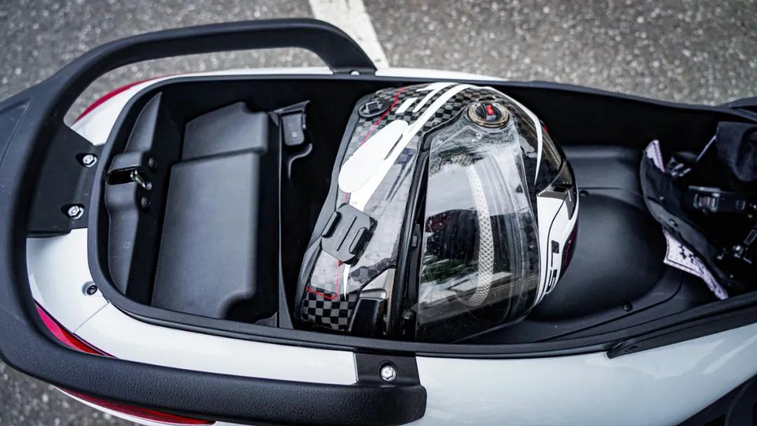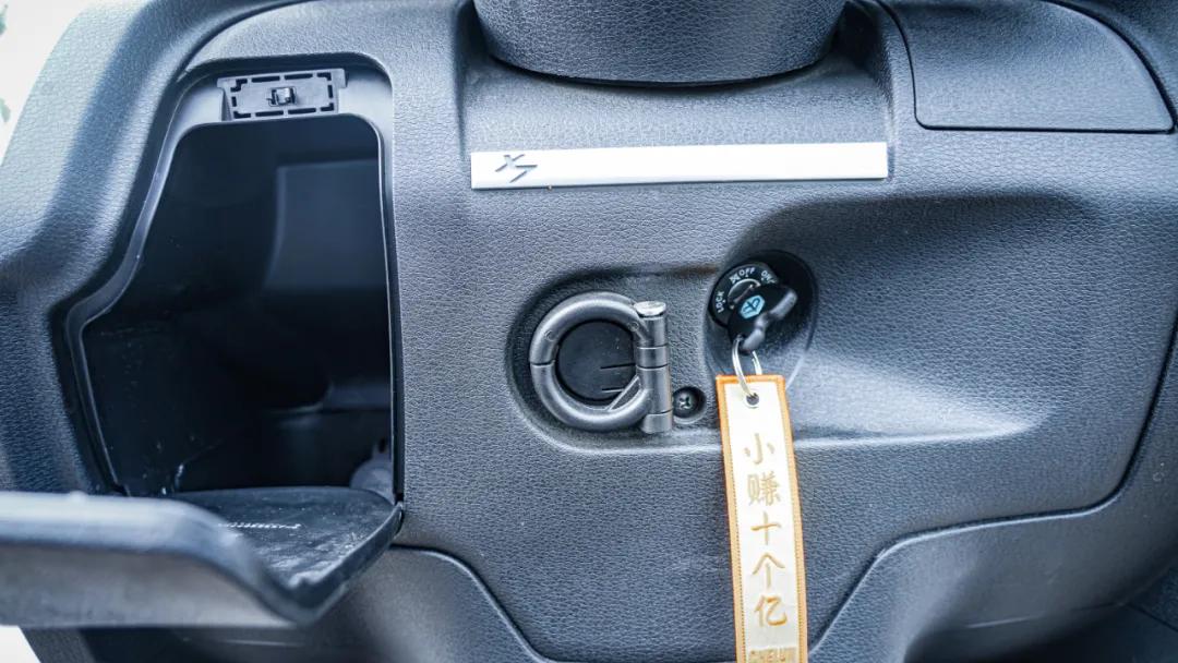 能夠看到X7的座桶空間還算比較可觀,在250這個(gè)級(jí)別里能夠放下一頂全盔,并且還能夠合上是真的不太多見(jiàn),并且前半部分還有空余可以?xún)?chǔ)物,或是再放一頂瓢盔。而且它的坐墊打開(kāi)方式比較特別,是按壓鑰匙孔由此我就發(fā)現(xiàn)一個(gè)BUG,那就是拔掉鑰匙直接徒手推鑰匙孔,它也能打開(kāi)坐墊,只有鎖了龍頭鎖才無(wú)法打開(kāi)坐墊,所以盡量不要放一些貴重物品在座桶內(nèi)。