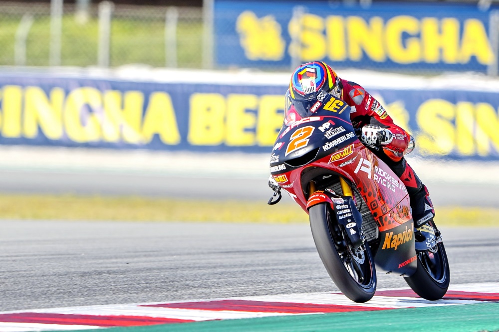憑借著在三節(jié)自由練習(xí)中跑出來的較好圈速,羅德里戈和阿科巴都直接進(jìn)軍 Q2。到了 Q2,兩人以一個(gè)彼此 “ 掩護(hù) ” 的方式來推進(jìn),以求獲得更好的破流效果。最終兩人都在第五圈(他們在 Q2 的最后一圈)跑出了個(gè)人的最快圈速 —— 羅德里戈跑出了創(chuàng)記錄的 1 分 47.597 秒的時(shí)間,比周五時(shí)候、他所創(chuàng)造的 1 分 47.95 秒快了大約 0.4 秒;阿科巴則跑出了 1 分 47.914 秒。整個(gè) Q2 中、只有三位車手跑進(jìn)了 1 分 47 秒的大關(guān),而吉斯尼 Moto3 車隊(duì)、占據(jù)了其中兩個(gè)。