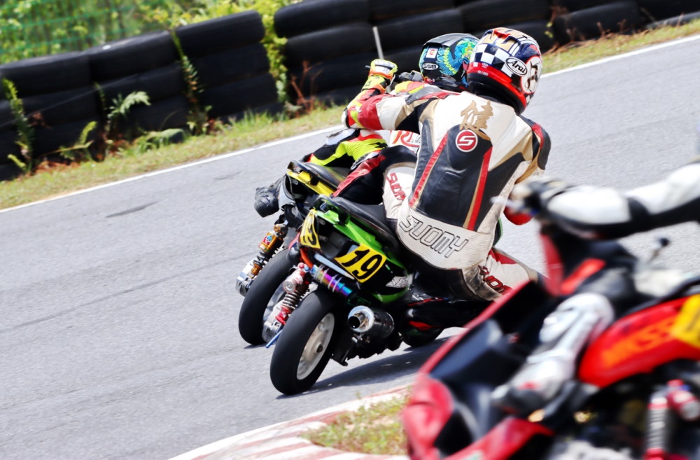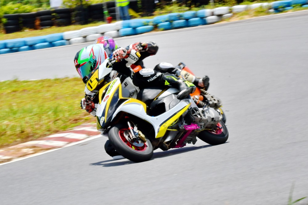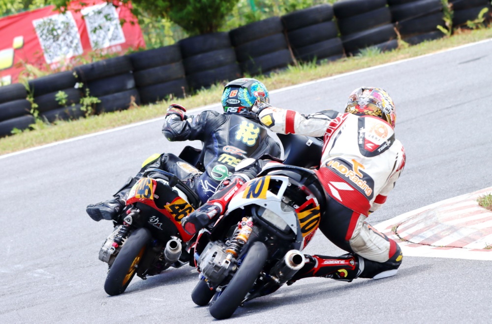 艾瑞森輪胎改裝踏板 150 cc 公開組和改裝踏板新人組的兩節(jié)比賽,有著一個(gè)意料以外的激烈追逐 —— 除了全場(chǎng)冠軍爭(zhēng)奪戰(zhàn)是近身搏斗之外,后面多個(gè)競(jìng)爭(zhēng)小組也同樣地是寸土必爭(zhēng)的較量,一圈下來多次交換位置、見縫插針的卡位、摔車,貫穿了大部分的比賽時(shí)間。