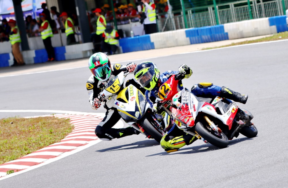 賽前的計(jì)時(shí)練習(xí)(排位賽),艾瑞森輪胎改裝踏板 150 cc 公開組的三位車手排在了前三:46 號(hào)車的賀彬彬、最佳圈速 1 分 00.175 秒,排在發(fā)車位置的第一;10 號(hào)車的李俊、最佳圈速為 1 分 00.243 秒,排在第二;71 號(hào)車的譚嘉健、以 1 分 01.092 秒最佳圈速排在第三。