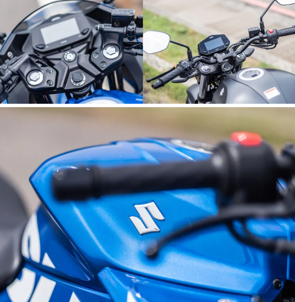 在其他方面,均采用單色液晶儀表,SF版采用分離把,GIXXER250采用一體式車把,油箱均為12L,座高800mm,整備質(zhì)量分別是154kg和158kg。