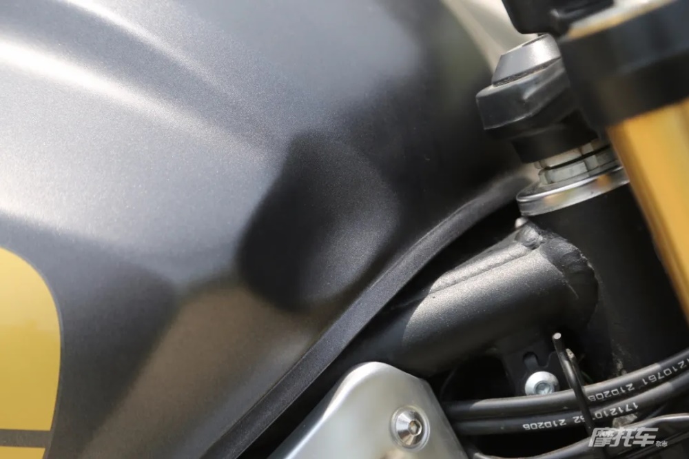 不過油箱上碩大的“500”字樣、油箱前的“凹陷”以及后牌照架的走線都可以再考究一點,畢竟是一臺有格調的復古車,在細節(jié)處理上能夠再精細一些,將對整車的品質又進一步的提升。