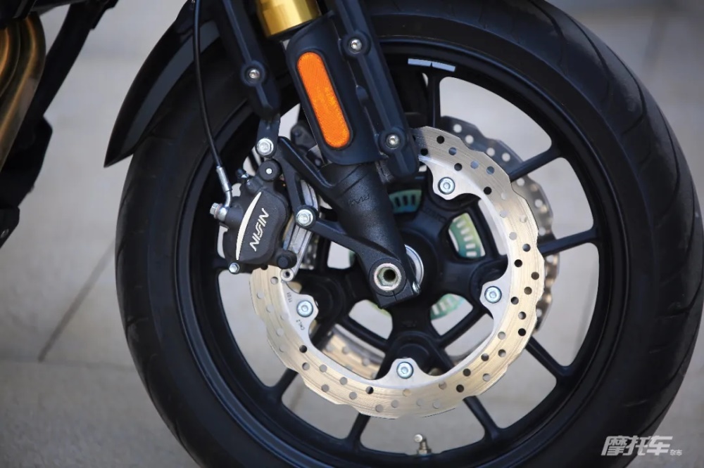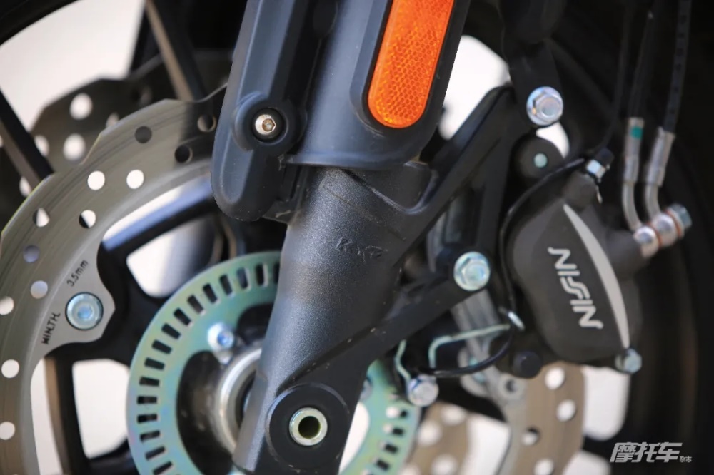 整車減震系統(tǒng)采用了KYB品牌,制動采用了Nissin卡鉗,輪胎使用了倍耐力天使胎,ABS采用了博世品牌,這些看得見摸得著的大品牌搭配在500AC上,也為這款車的科技感提升不少,同時也讓人期待這款看起來復古風格濃郁,又配置精良的國產中排量街車,騎起來會是怎么樣的。