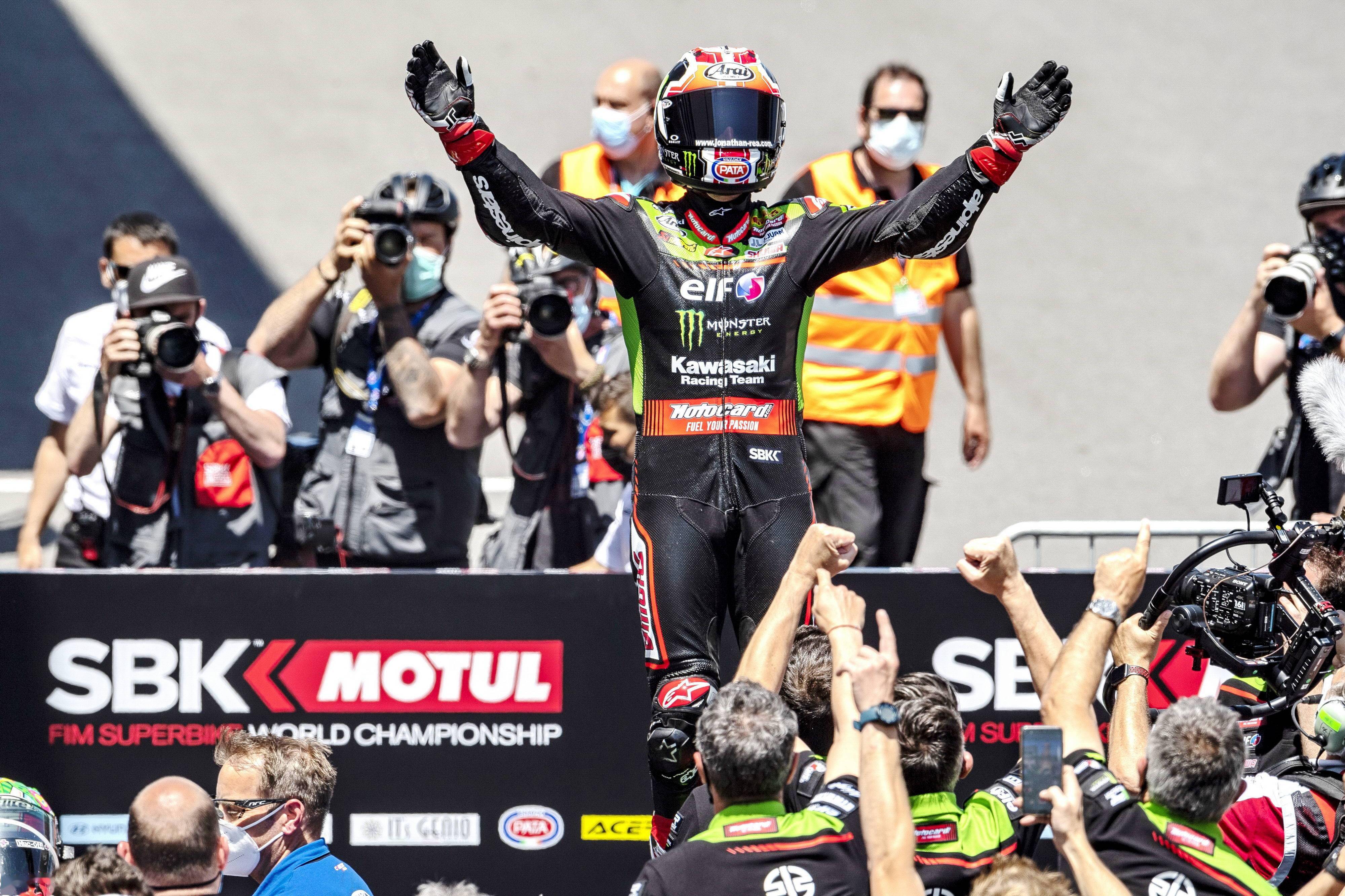 賽前的 Superpole 超級排位賽,應(yīng)屆世界冠軍雷亞(Jonathan Rea)跑出了破記錄的 1 分 35.876 秒的最佳圈速(舊記錄是去年的 1 分 36.154 秒),獲得了排頭位出賽。