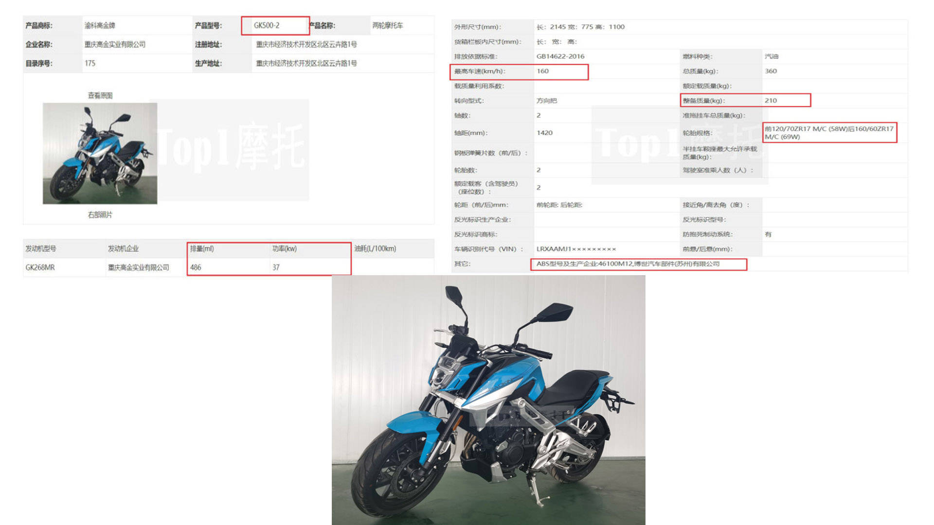 高金GK500街車版上市在即 有望重慶摩展上市 硬剛新款無極500R