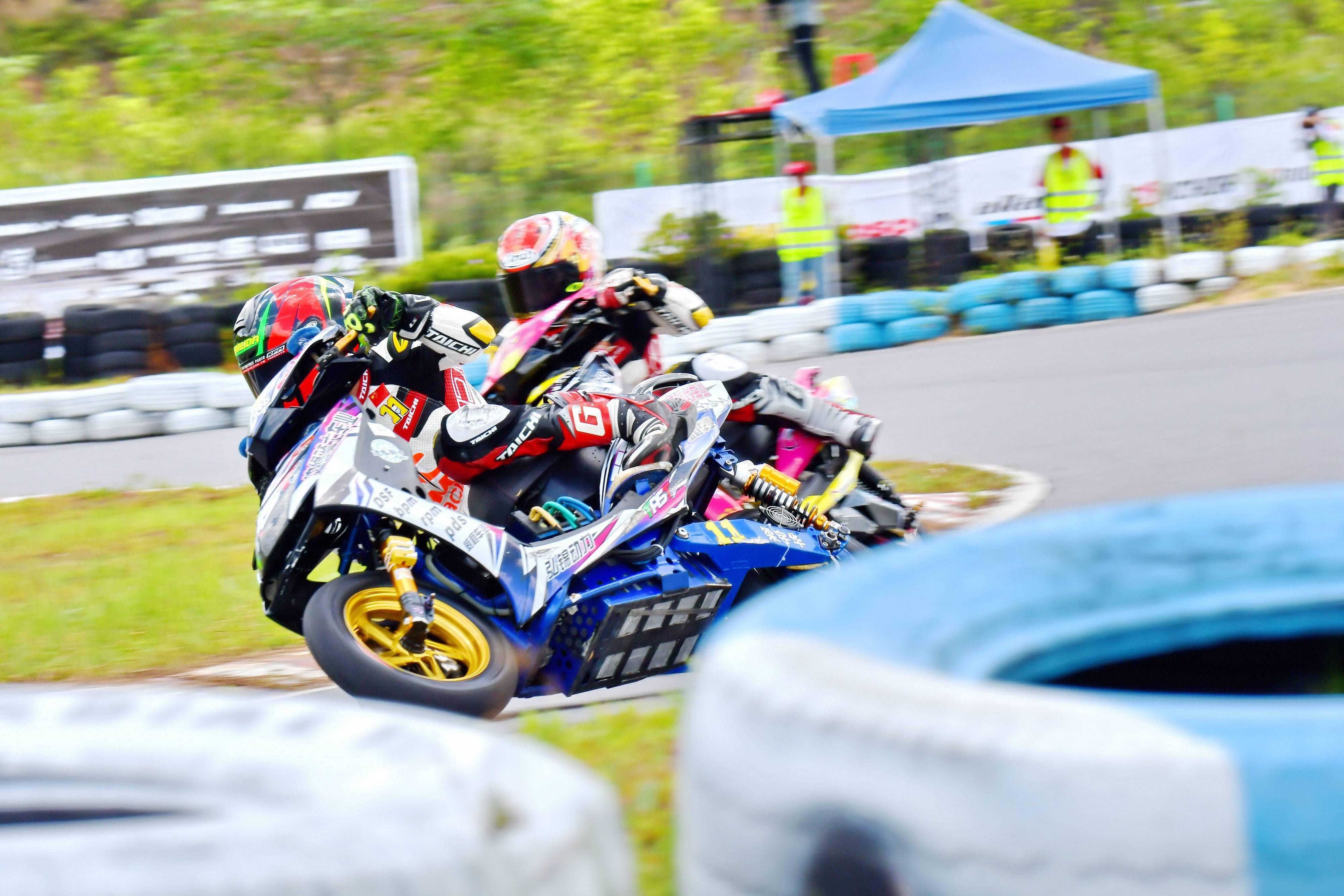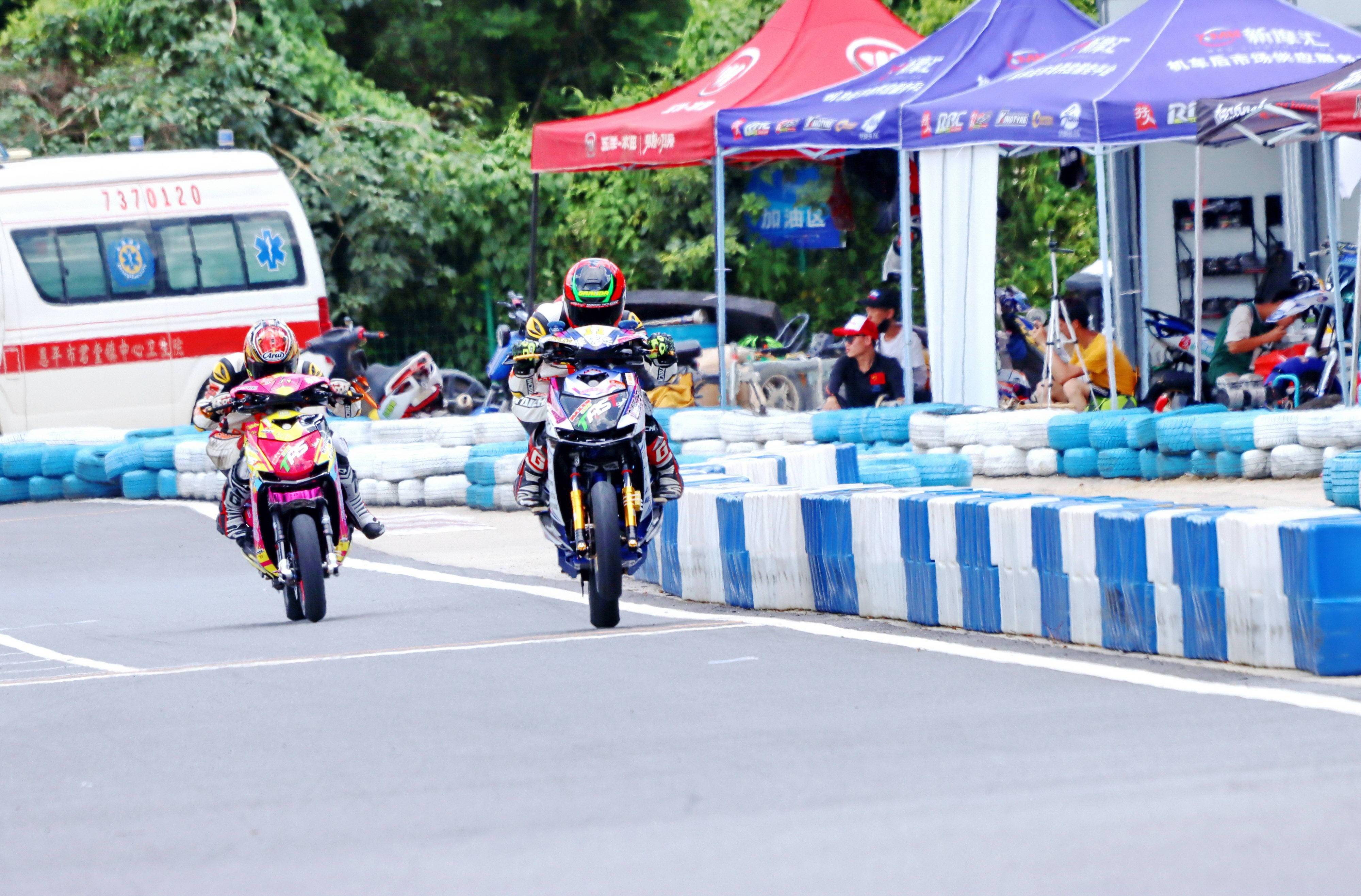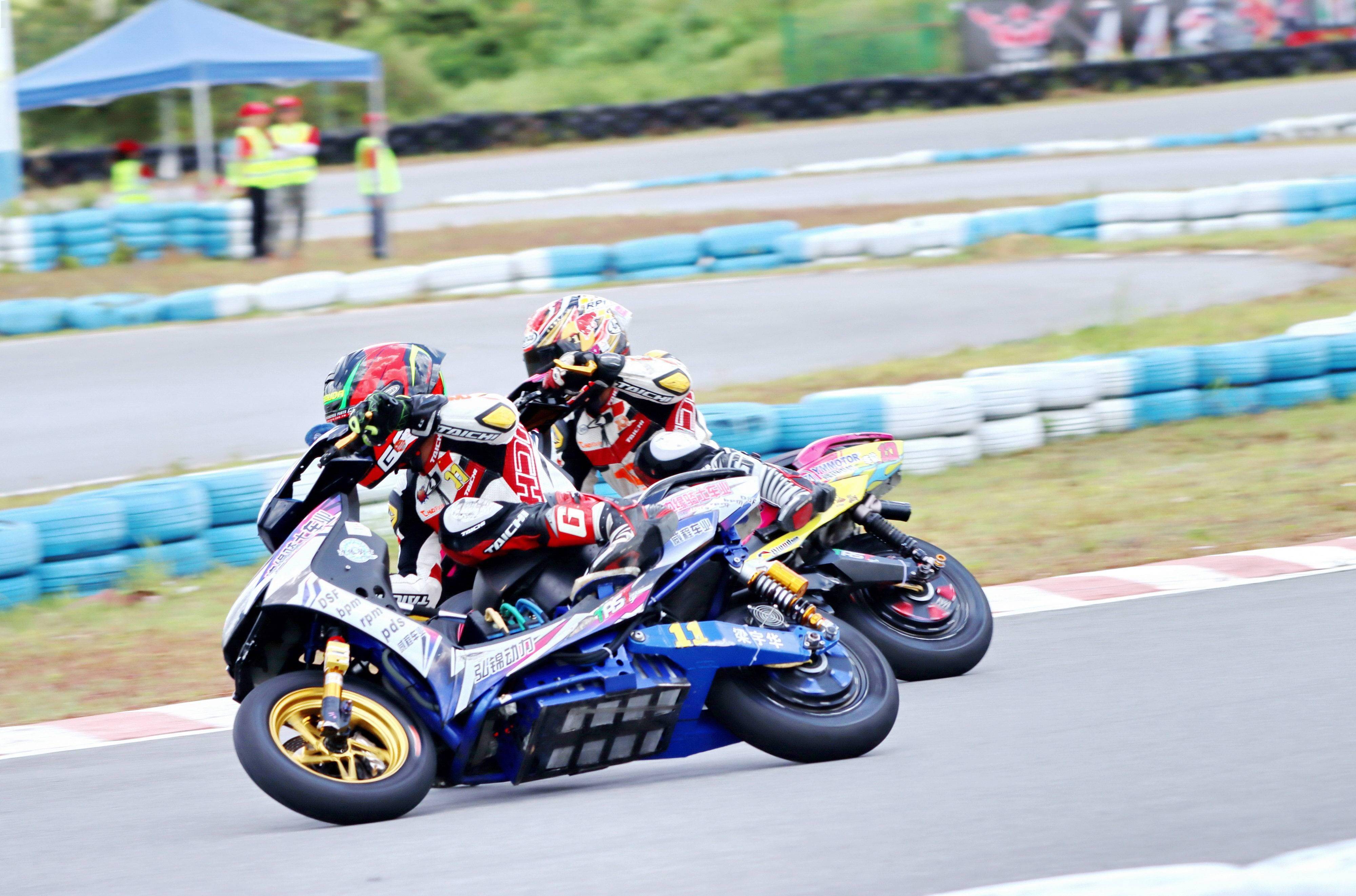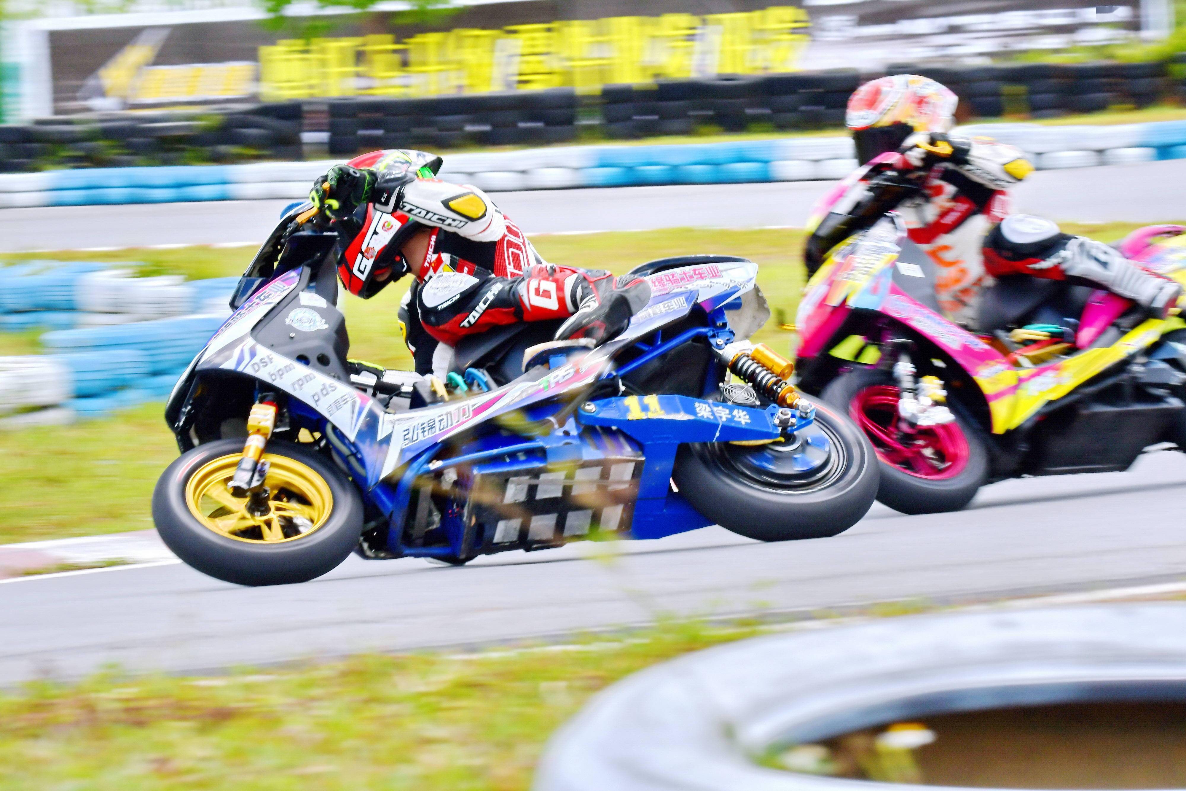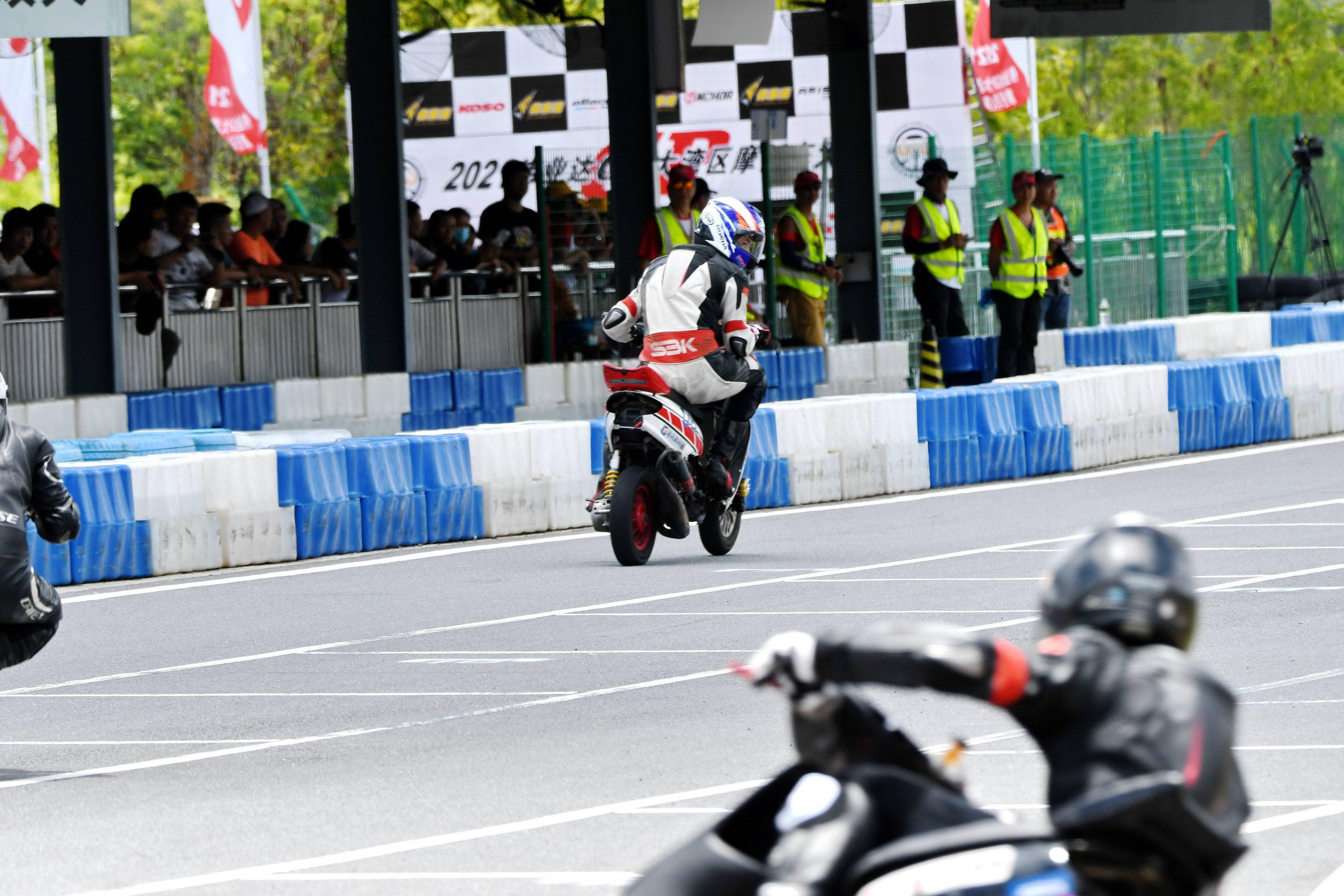 后面,同為電車公開組、10 號車的李俊,跑出了 58.845 秒的最快圈速,排在了全場的第二位起步。(兩沖程)踏板公開組、6 號車的聶潭排在了第三。